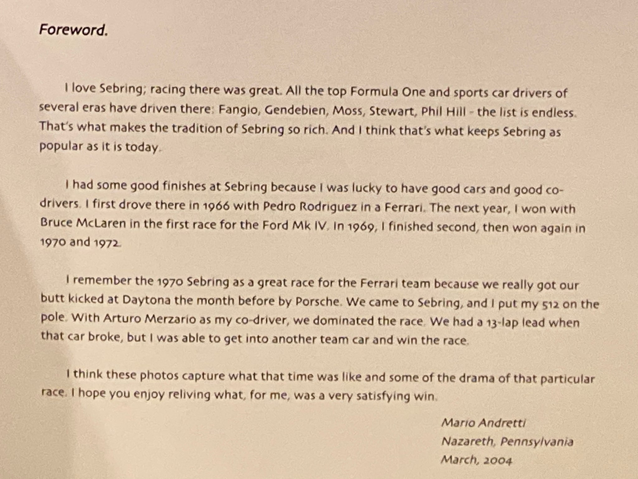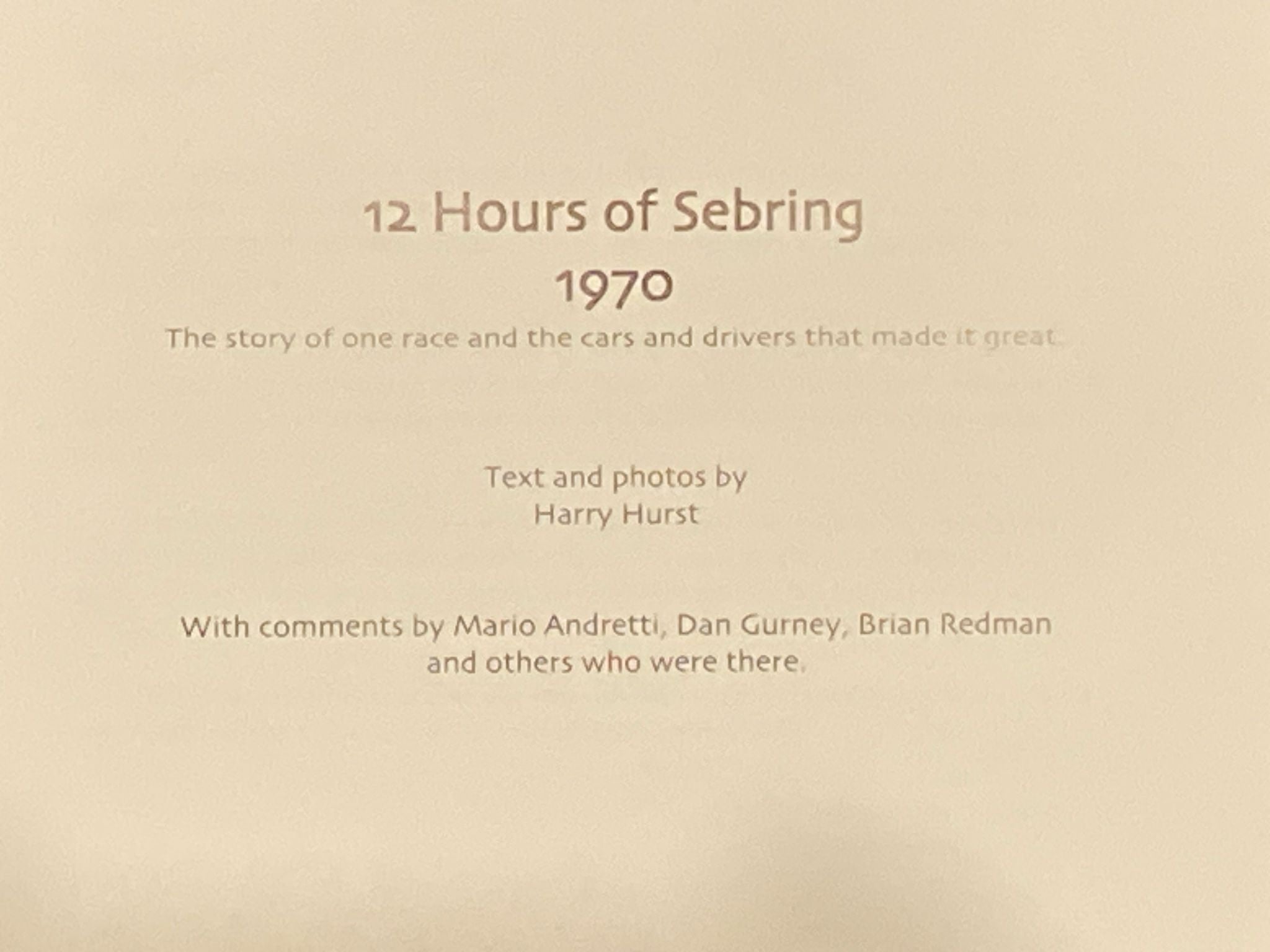 12 Hours of Sebring | Harry Hurst w/ Foreword by Mario Andretti (2004, Hurst Communications Inc., First Printing) Item Number: 4476-268 Item ID: 108222 Category: Book