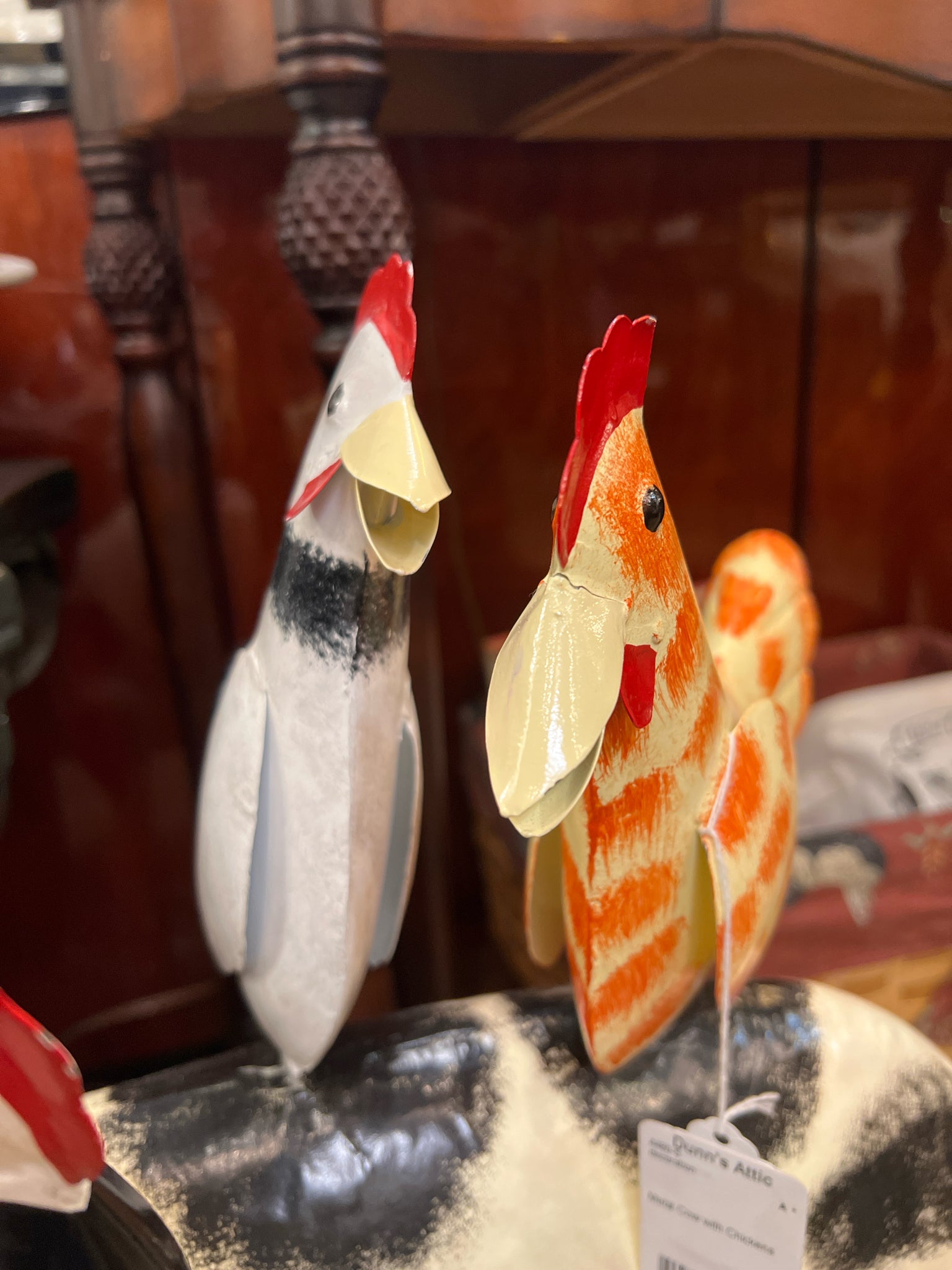 Metal Cow with Chickens