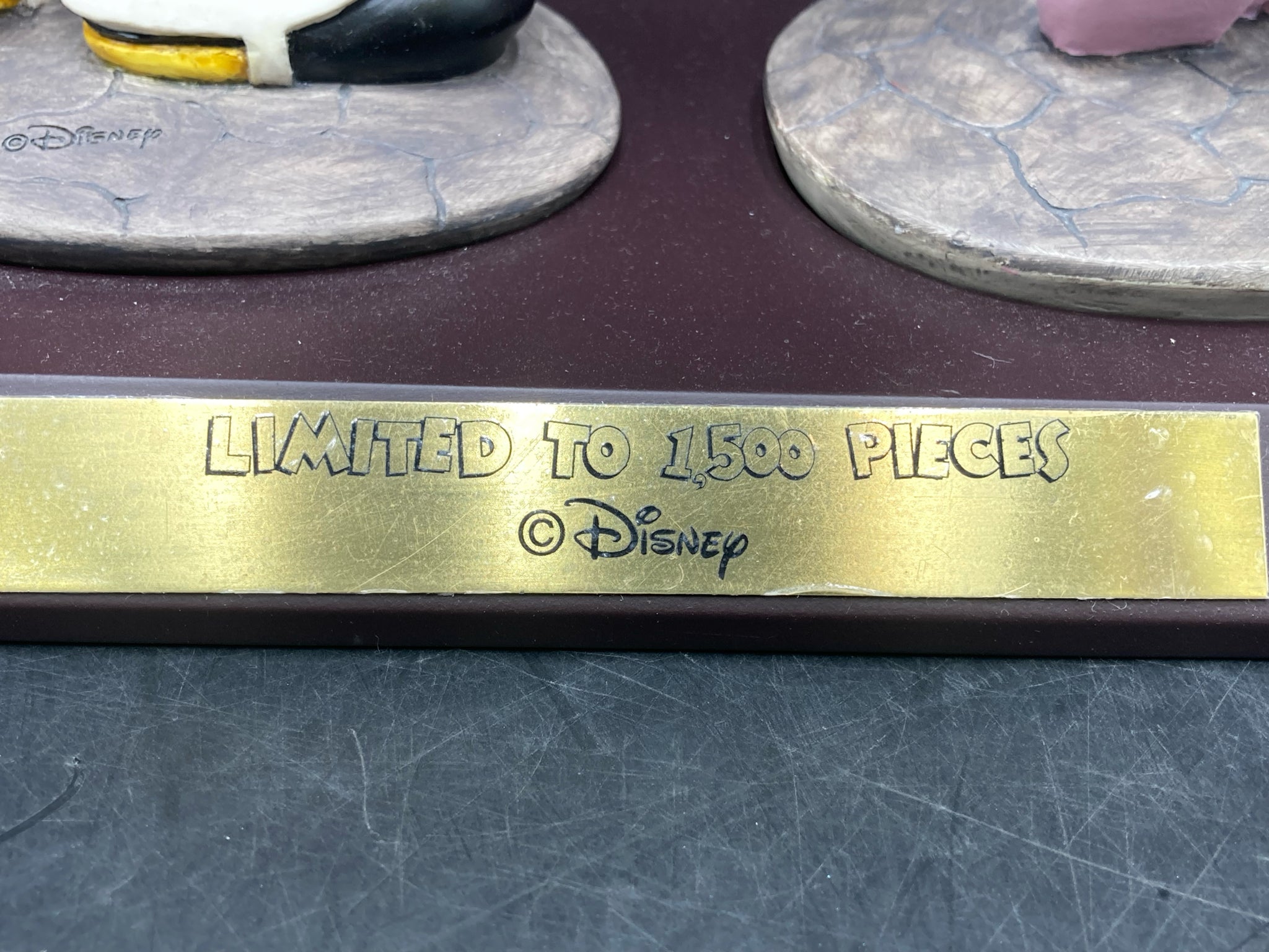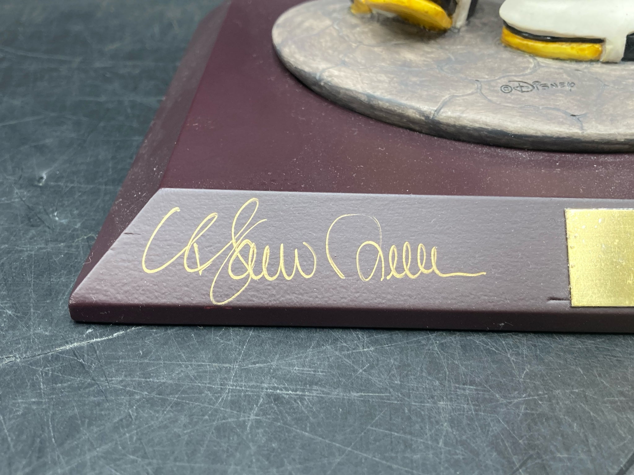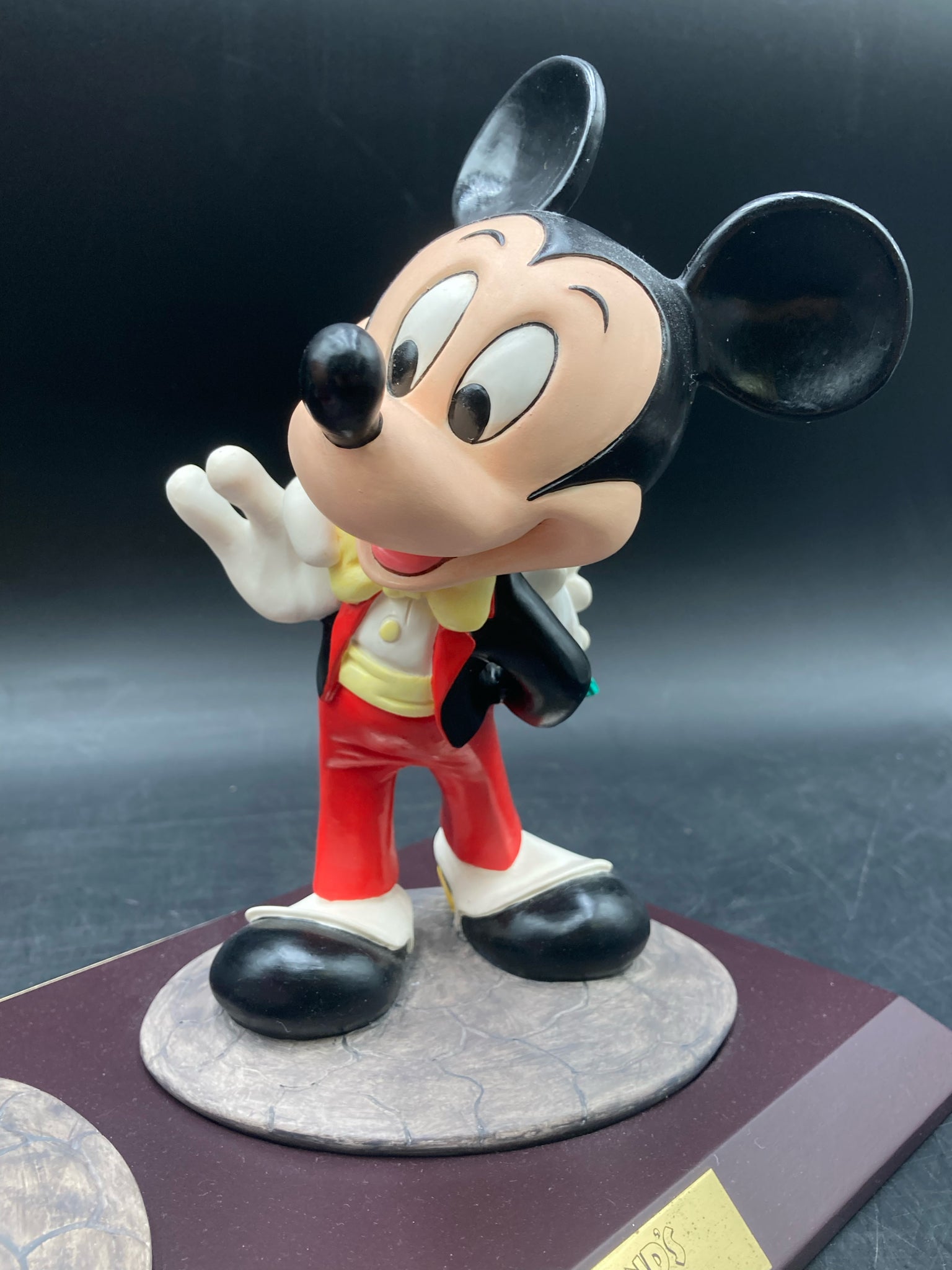 Disneyland 40th Anniversary signed limited edition Mickey and Minnie figure. Figure was released at Disneyland as part of the park's 40th anniversary celebration. Colorful and cute modeling of Mickey and Minnie surprising each other with gifts. Figure base is signed and dated by Disney artist Marc Delle. Figure is part of a limited run of only 1500 pieces. Figure measures 12" long and roughly 8" tall. Figure is in excellent condition with no damages or scuffs noted.