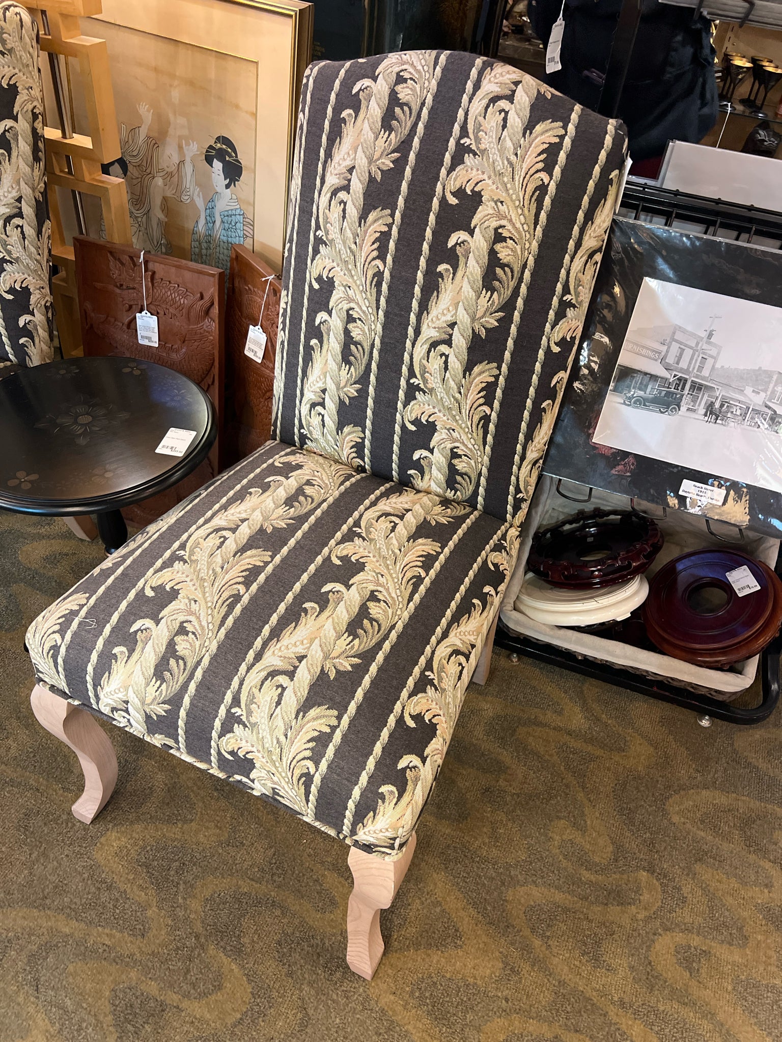 Pair of Black and Gold Pattern Parson's Chairs Item Number: 3750-82 Item ID: 98769 Category: Chair