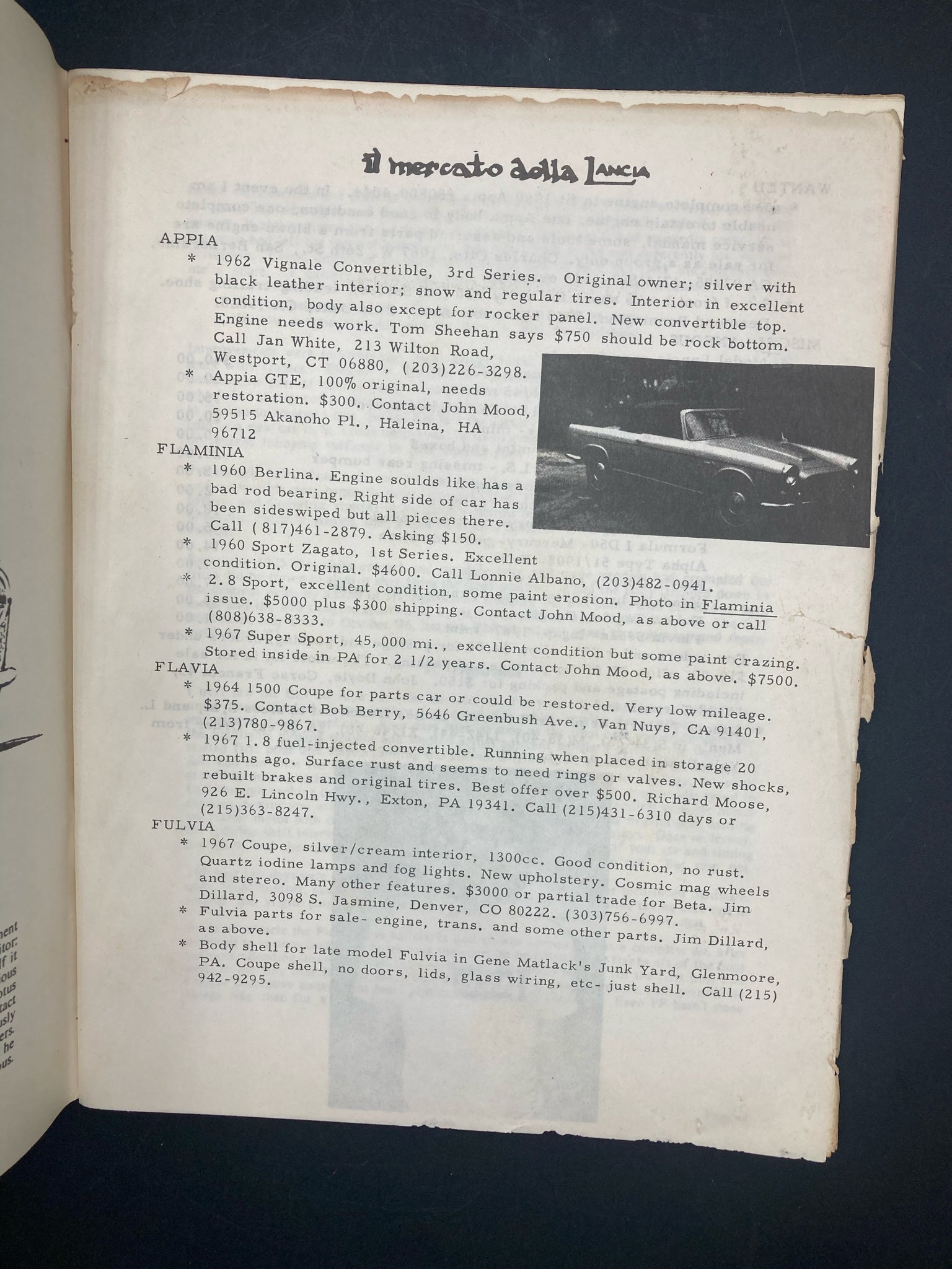 Vintage American Lancia Club "Lanciana" periodical journal, summer 1977 edition. American based Lancia periodical covering the news, race results and cars of Lancia from the era with accompanying images and editorials. Some pages are separating from the binding and there is general light age related wear, overall the book is in good condition.