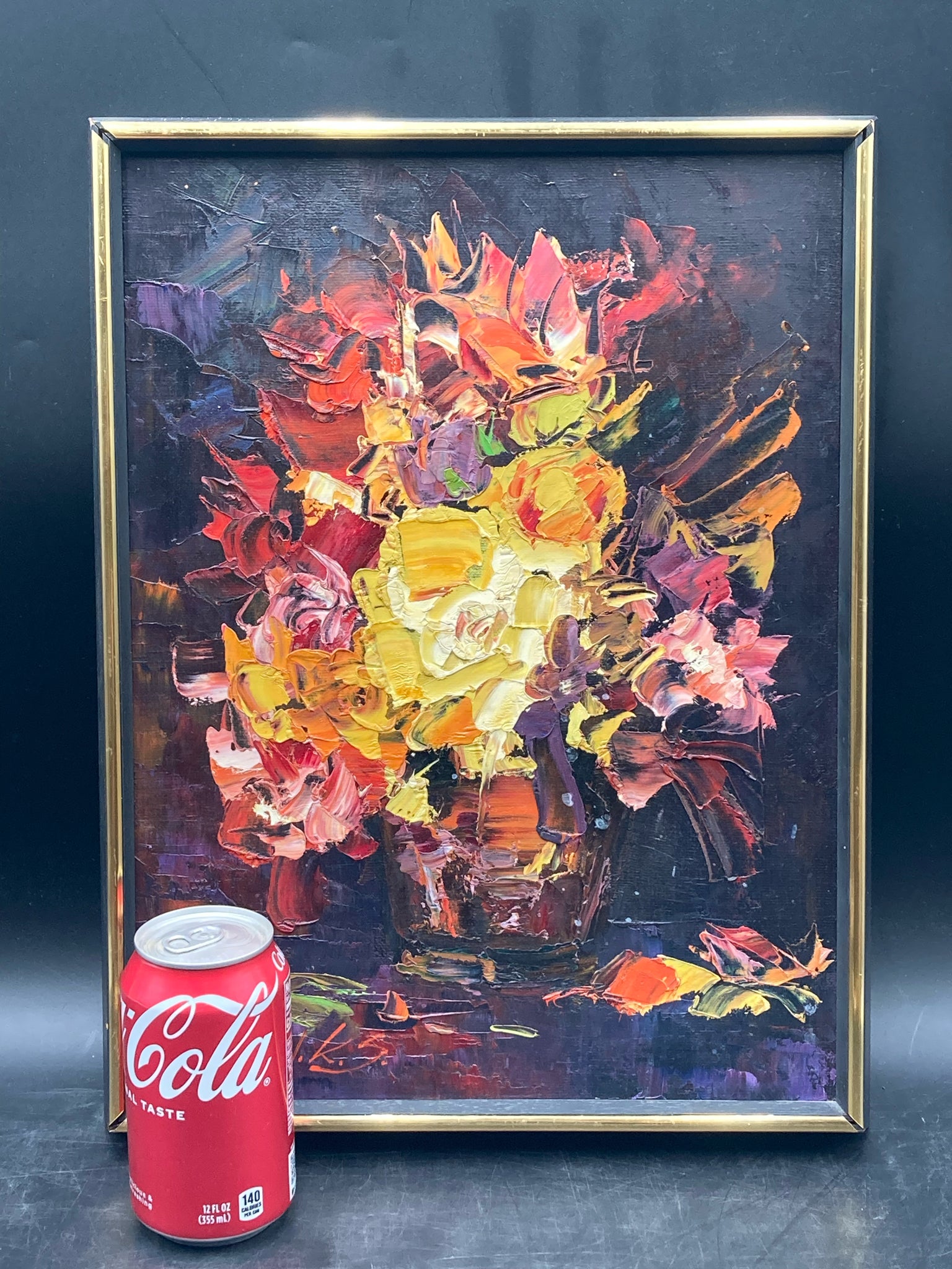 Artist Signed Impressionist Still Life Floral Oil Painting. Measures 13" by 17".
