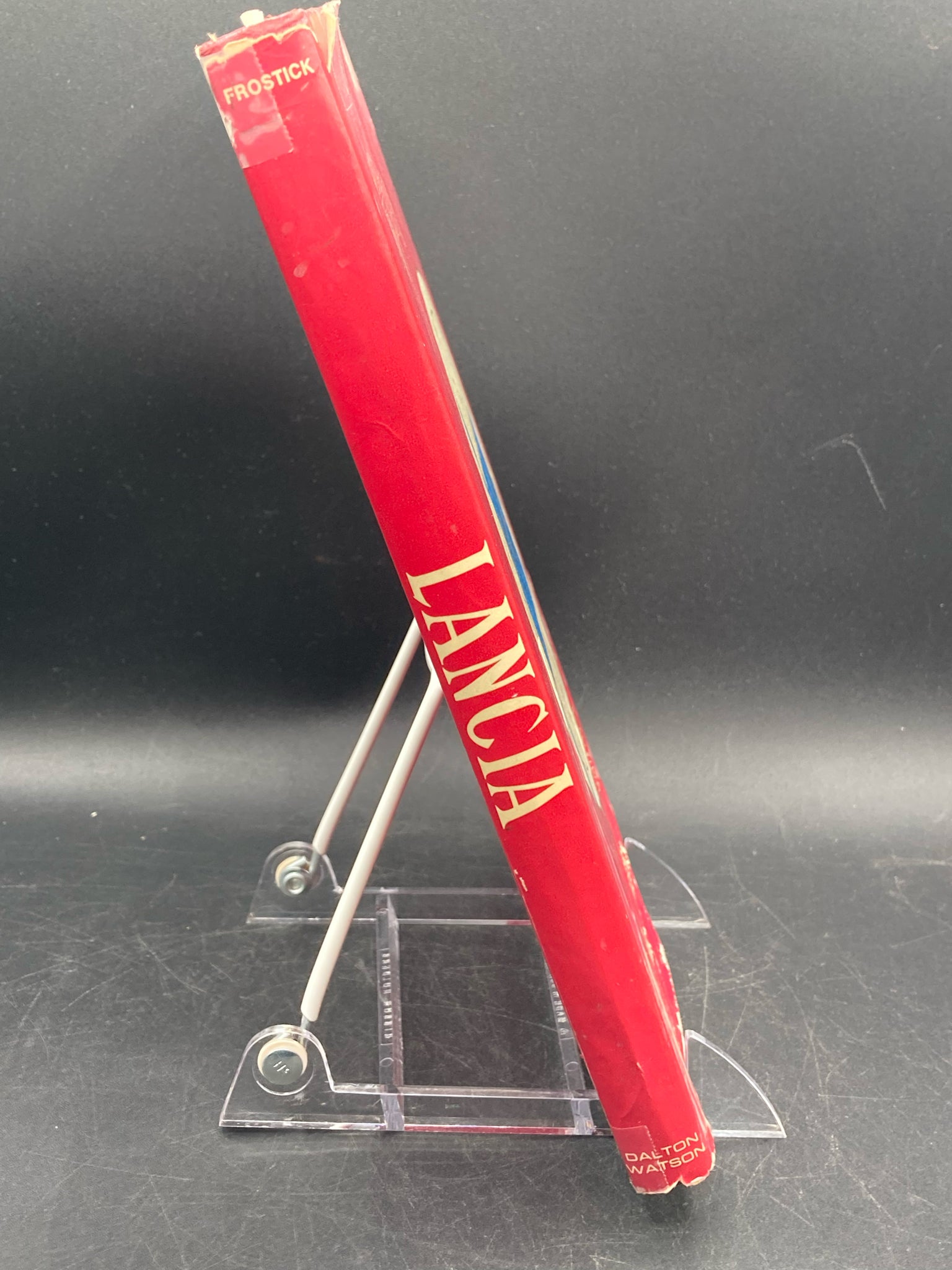 Lancia by Michael Frostick. Hardcover. 1976 printing by Dalton Watson Ltd/Motorbook International. Out of print book on the history of Lancia automobiles with accompanying images. Dust jacket has visible damage and wear, the rest of the book is in good condition. Rare find!