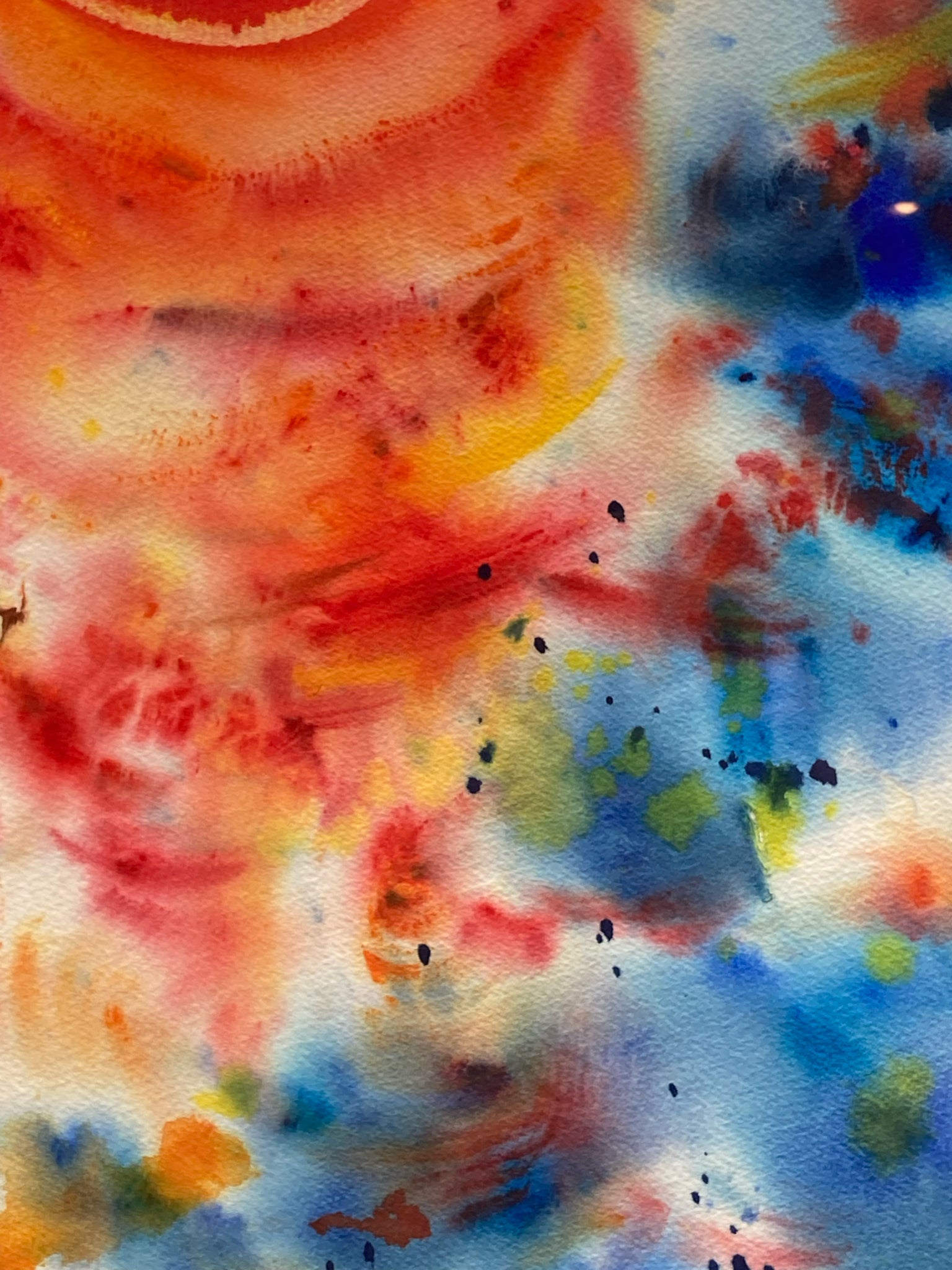 Original Harry Messersmith abstract watercolor painting. Signed by artist. Total size measures 24" wide and 30" tall.