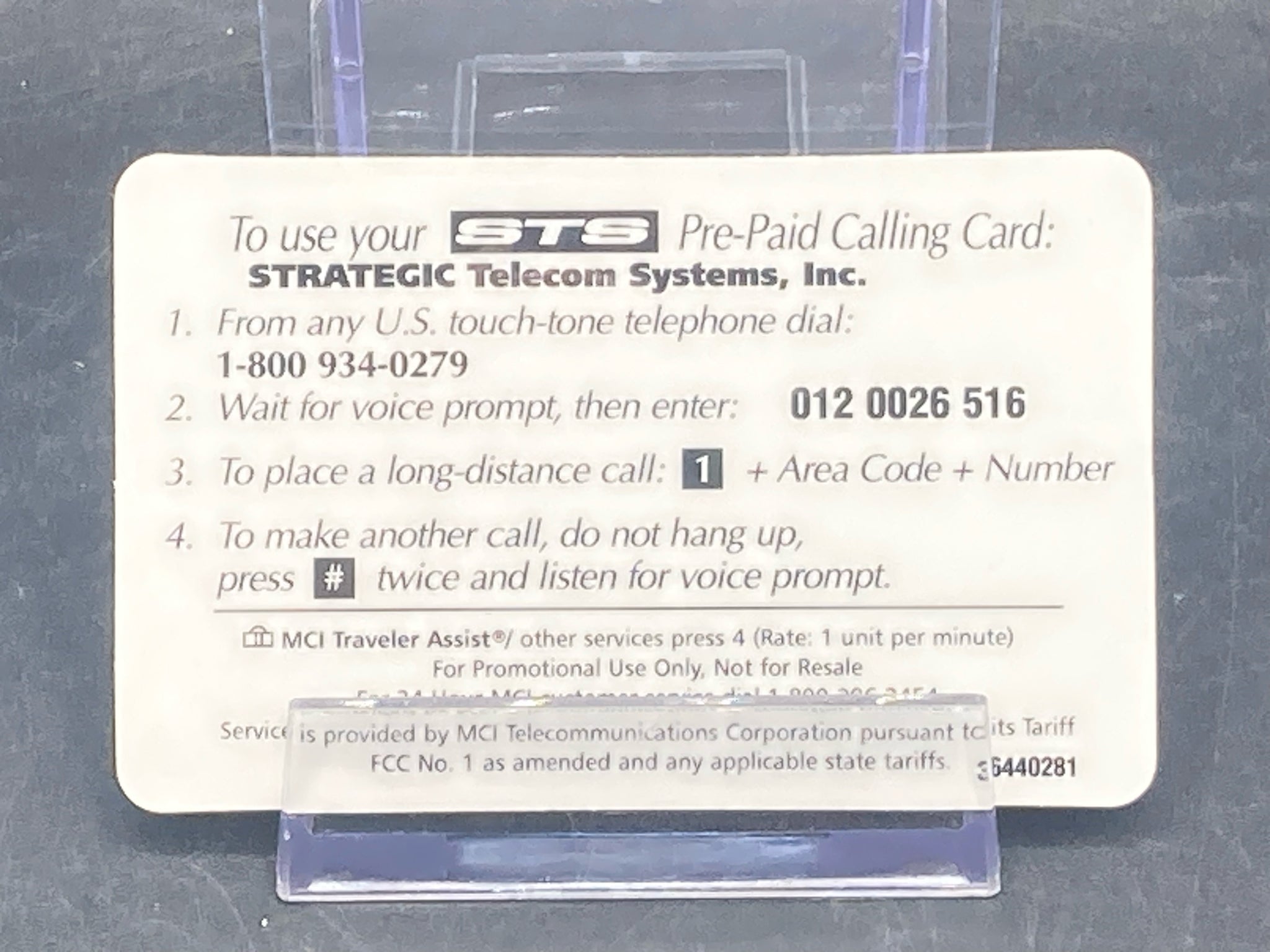Vintage Strategic Telecom Systems 1996 Minneapolis Convention "Calling up a brighter future" phone card. 5 minute card made to commemorate the 1996 telecommunications technology convention. Ungraded, cards are in excellent condition. Some may have activation number stripe rubbed off.