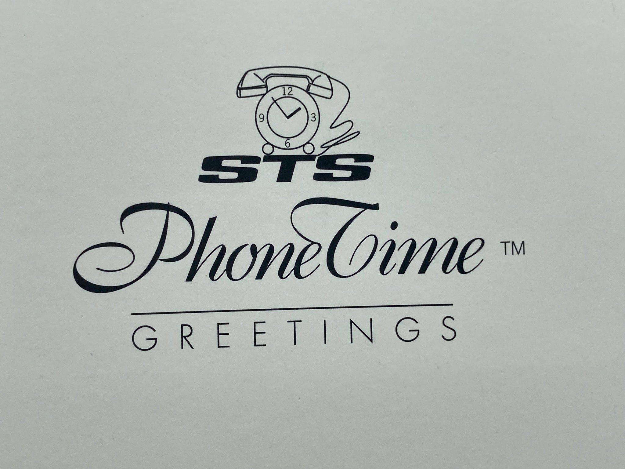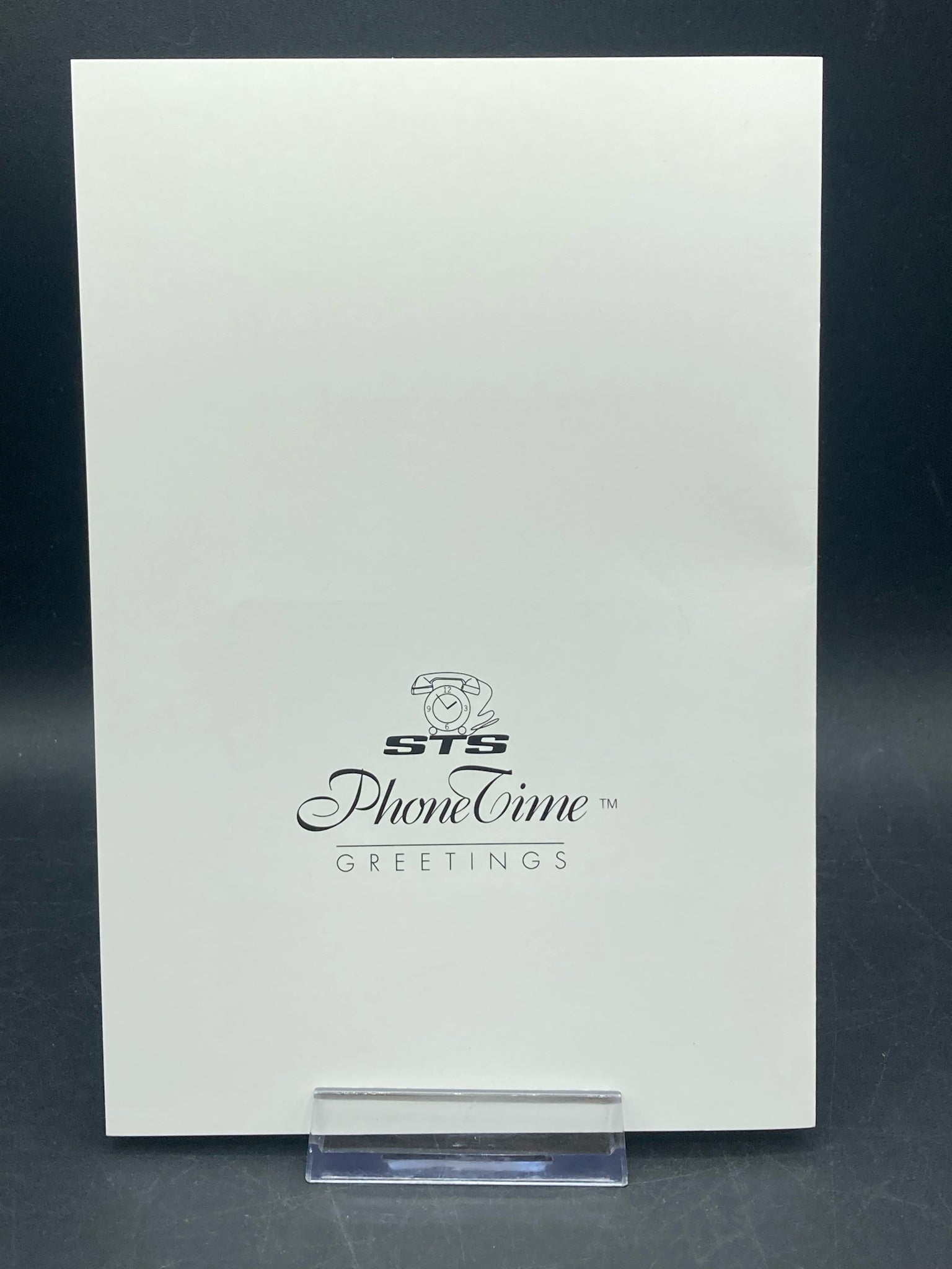 Vintage Strategic Telecom Systems phone time greetings greeting card and phone card. Issued in the 1990s, features a humorous greeting and a calling card with free prepaid minutes for a friend. Item is in excellent condition.