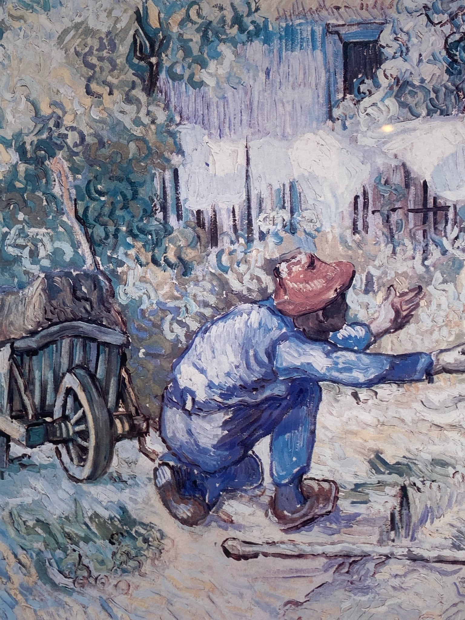Framed and matted Vincent Van Gogh "First steps" print. Print measures 11" tall by 15" long, total size with framing is 19" tall by 23" long. Print is in good condition.