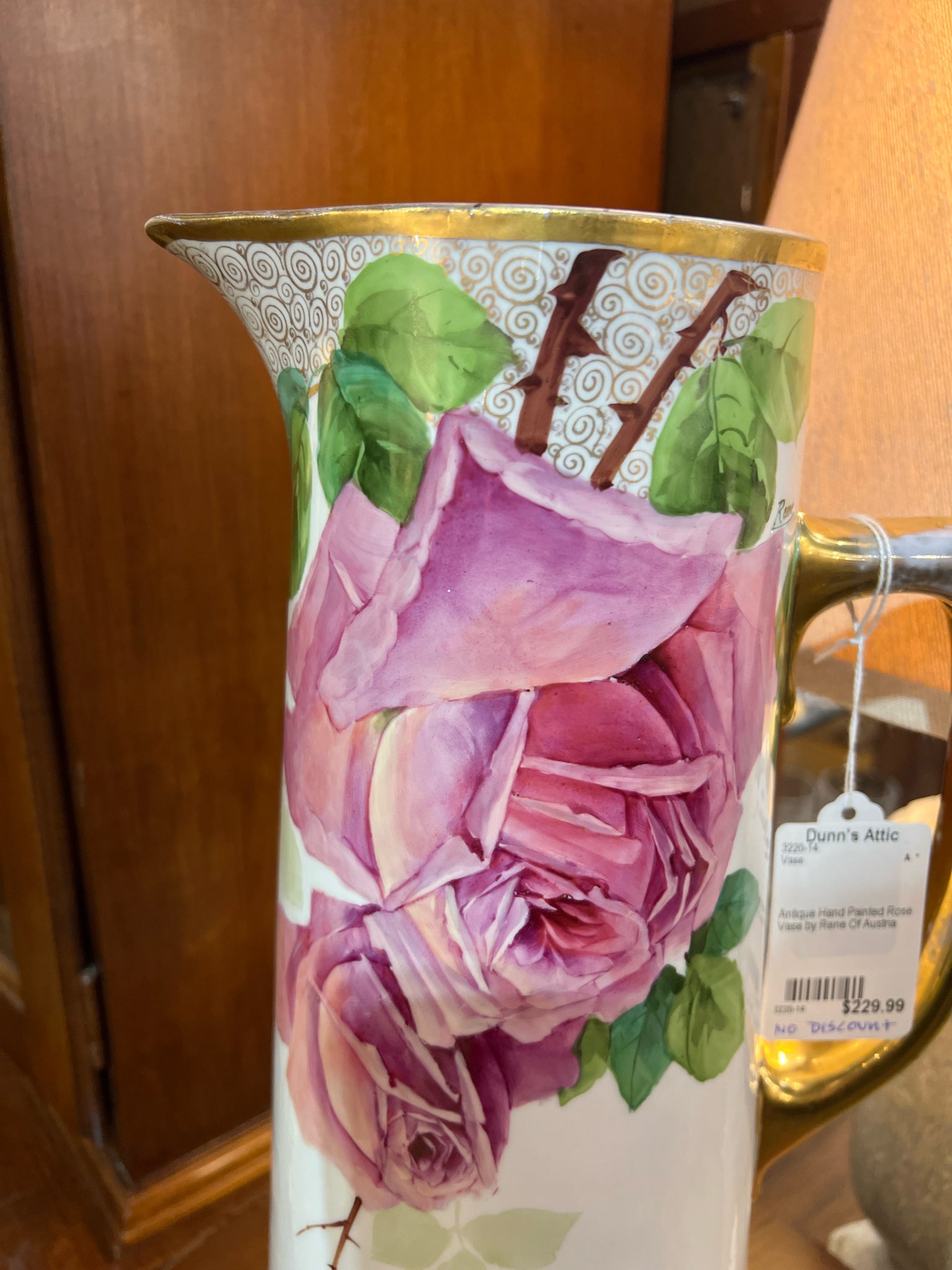 Antique Hand Painted Rose Vase by Rene Of Austria