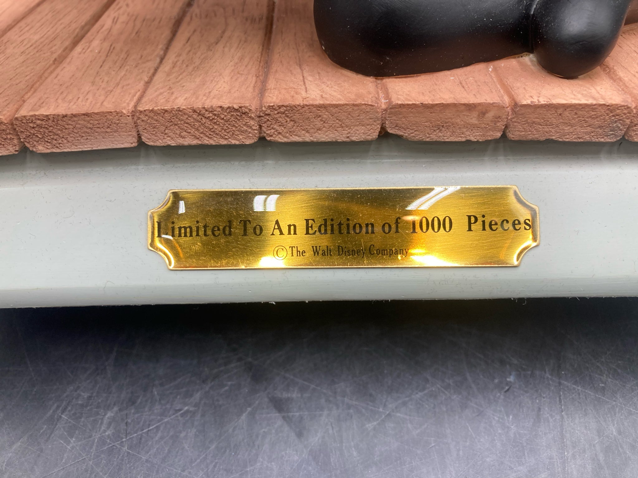 Disneyana 1887 convention artist signed Peg-Leg Pete statue with certificate of authenticity. Colorful and accurately detailed and styled resin statue of Peg Leg Pete from the 1928 Steamboat Willy cartoon. Statue is a limited edition run of only 1000 pieces distributed at the official 1997 Disneyana convention and is signed on the back by Disney artist Marc Delle. Number 672/1000. Statue comes with a convention issue certificate of authenticity. Statue measures roughly 13" tall and 10" wide. Statue is in excellent condition with no scuffs or damage noted.