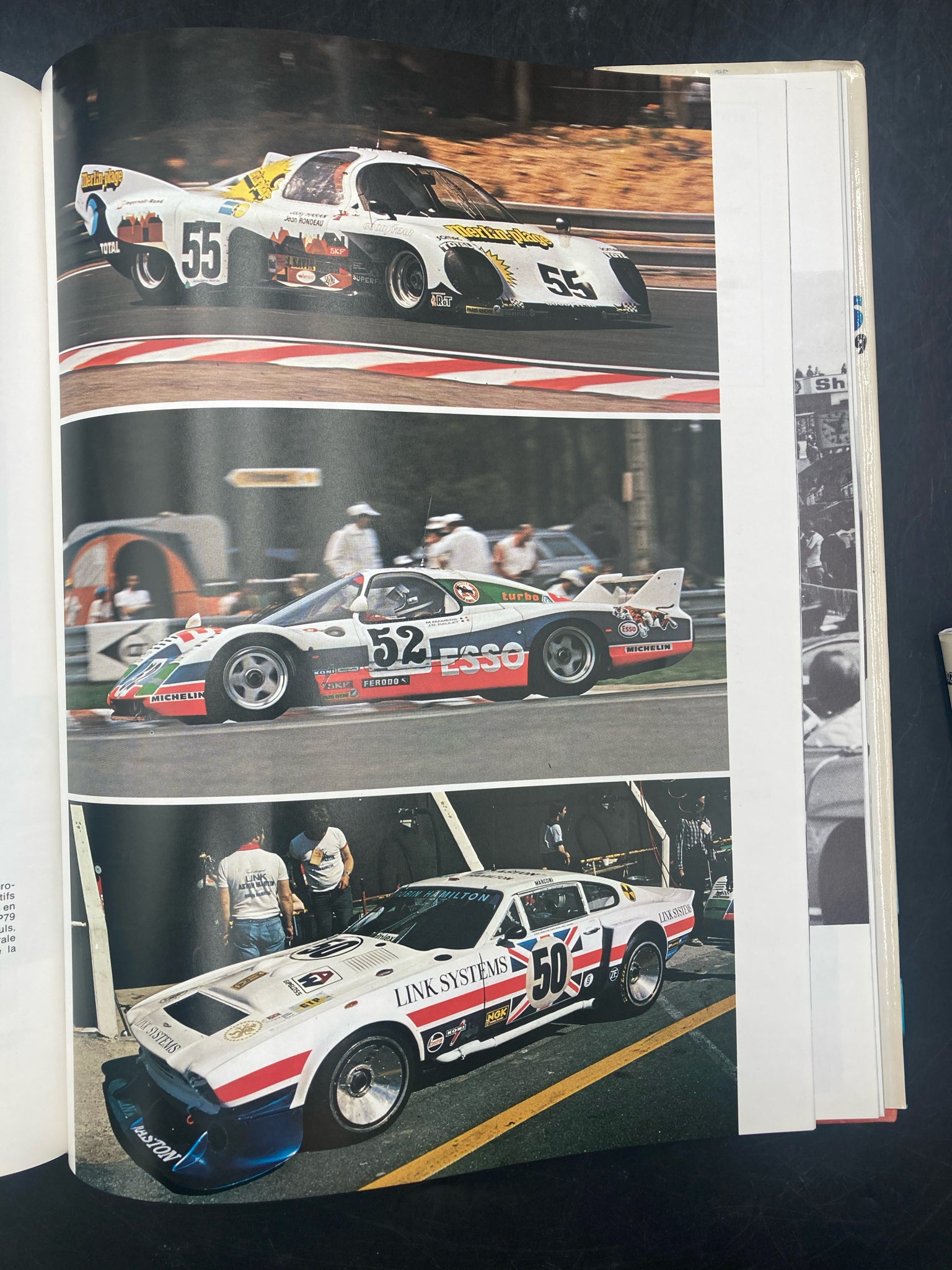 1979 24 heures du Mans race book, French language printing. Hard cover with dust jacket. Book covers the cars, drivers and events of the 1979 24 hours of Le Mans race with editorials and photos, along with the history of the race. Inner dust jacket has an area of wrinkling, otherwise the book is in excellent condition.