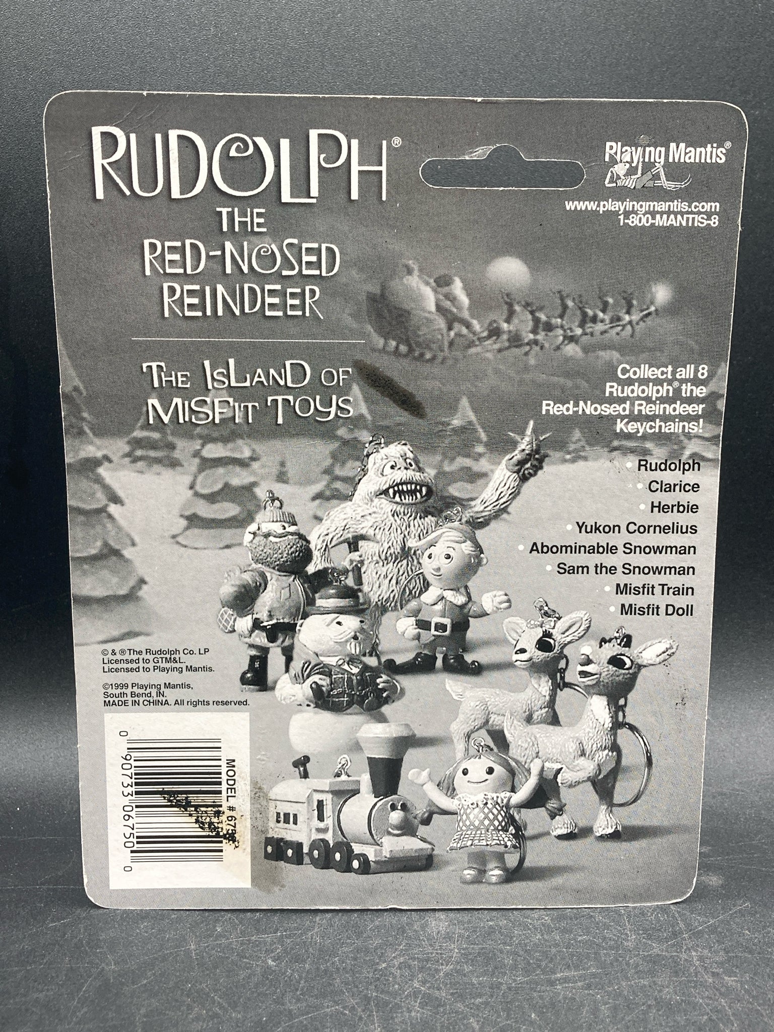 Rare 1999 CVS Playing Mantis Rudolph the red-nosed reindeer The island of misfit toys Herbie keychain, new in box. Box has some light wear, keychain is like new never been opened.