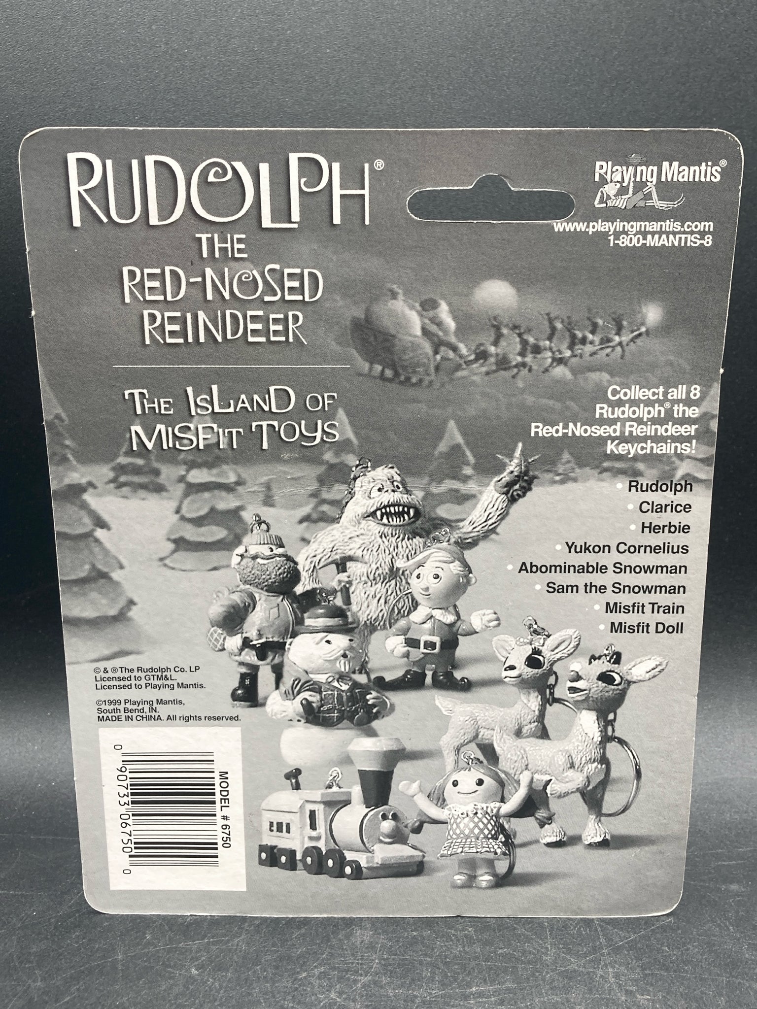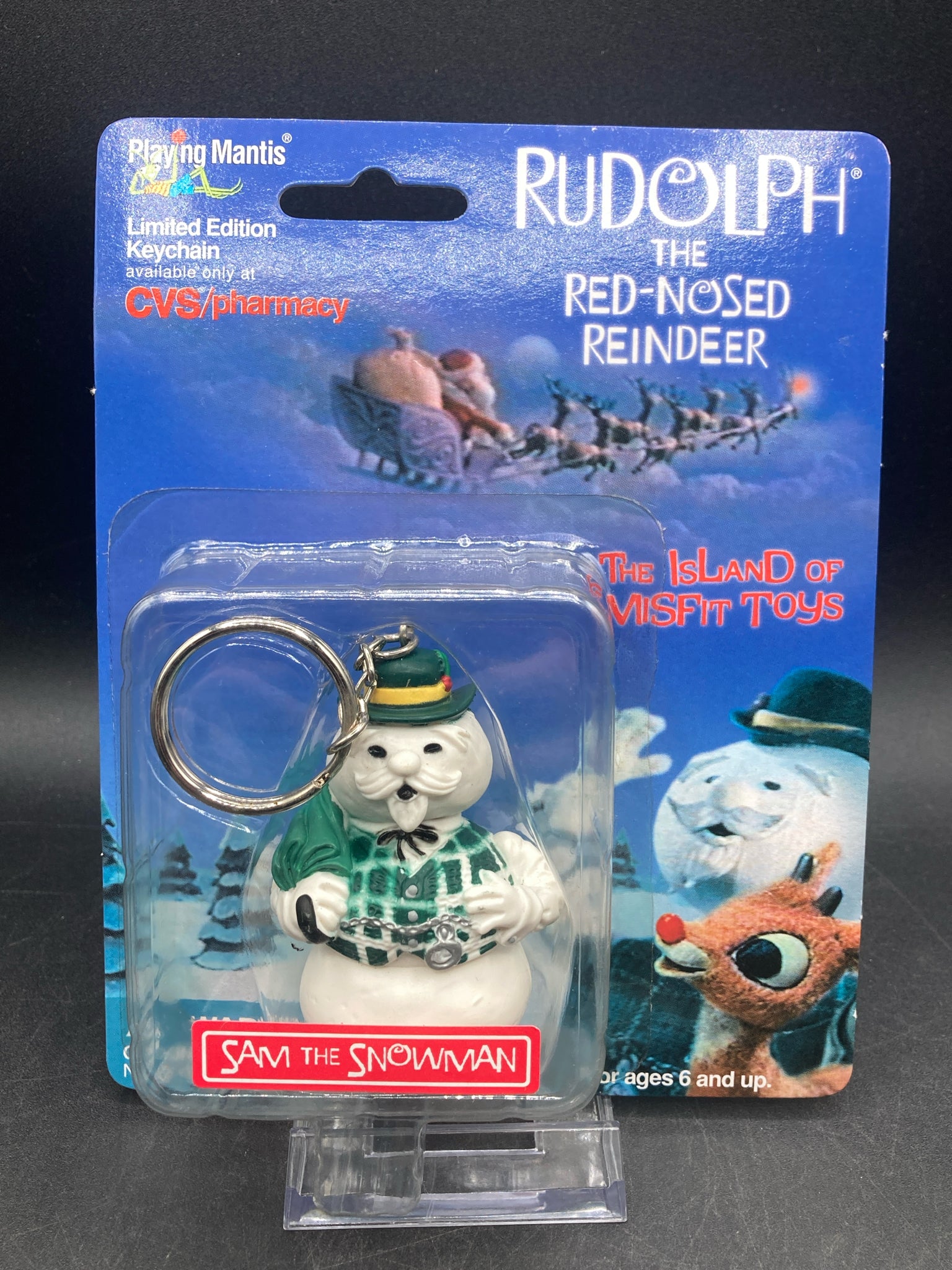 Rare 1999 CVS Playing Mantis Rudolph the red-nosed reindeer The island of misfit toys Sam the Snowman keychain, new in box.