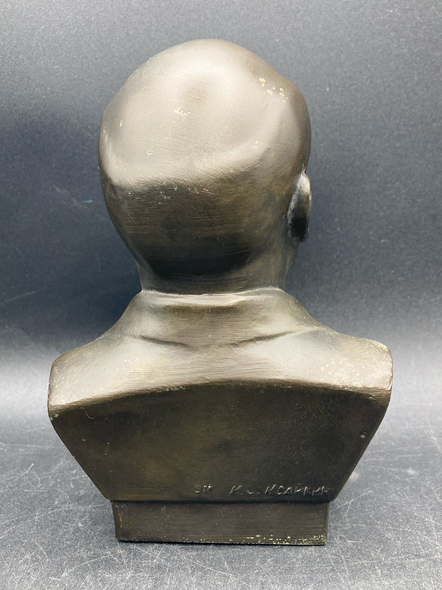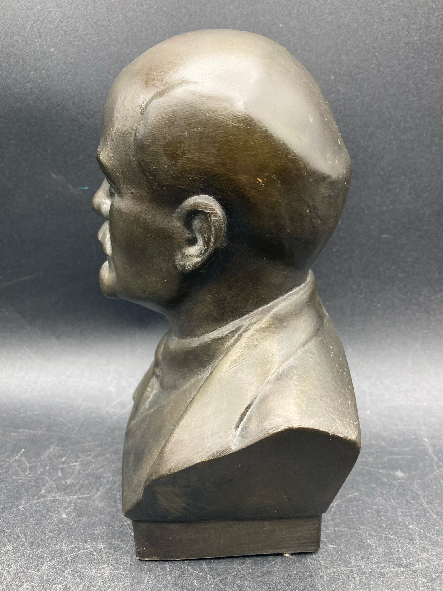 Vintage Vladimir Lenin bust. Made circa 1970s. Cast bronze profile bust of the famous Soviet Union leader. Measures 6" tall. One area of small nicks noted in photos, otherwise item is in good condition.