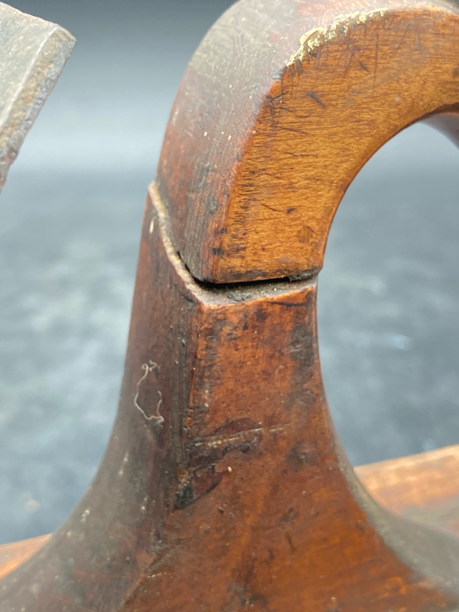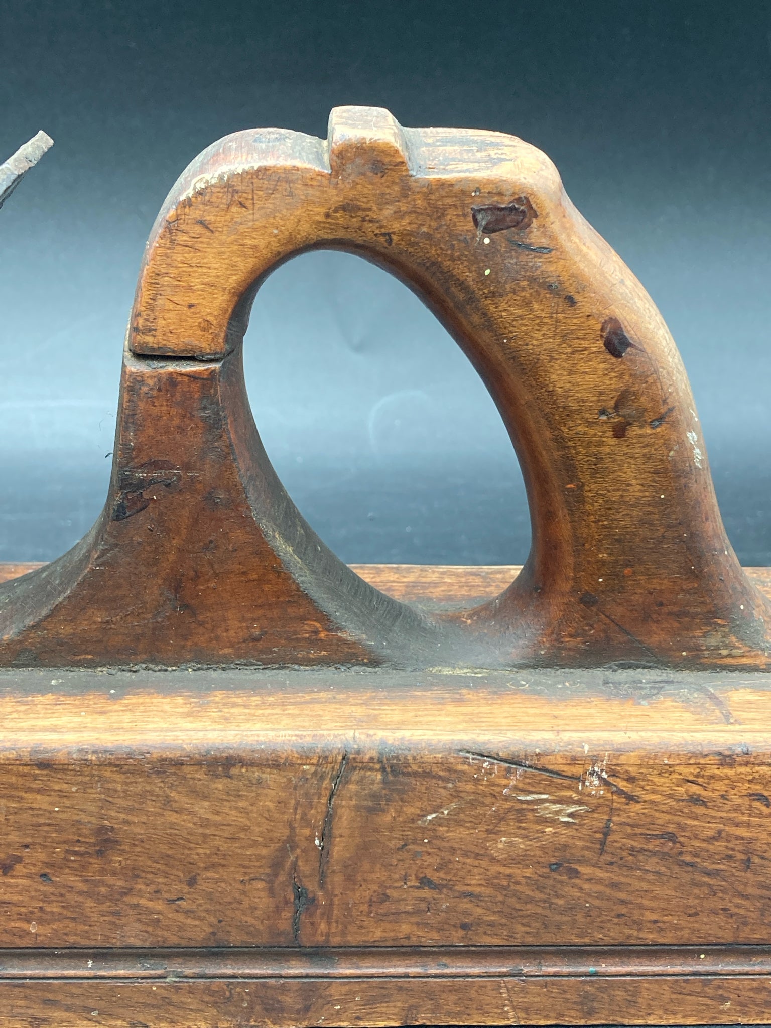 Antique wooden jointer planer. Unmarked and unbranded, appearane is roughly 19th century. Some wear, and a crack in the handle that doesn't affect its integrity are noted in photos. Overall it is in good condition for its age.