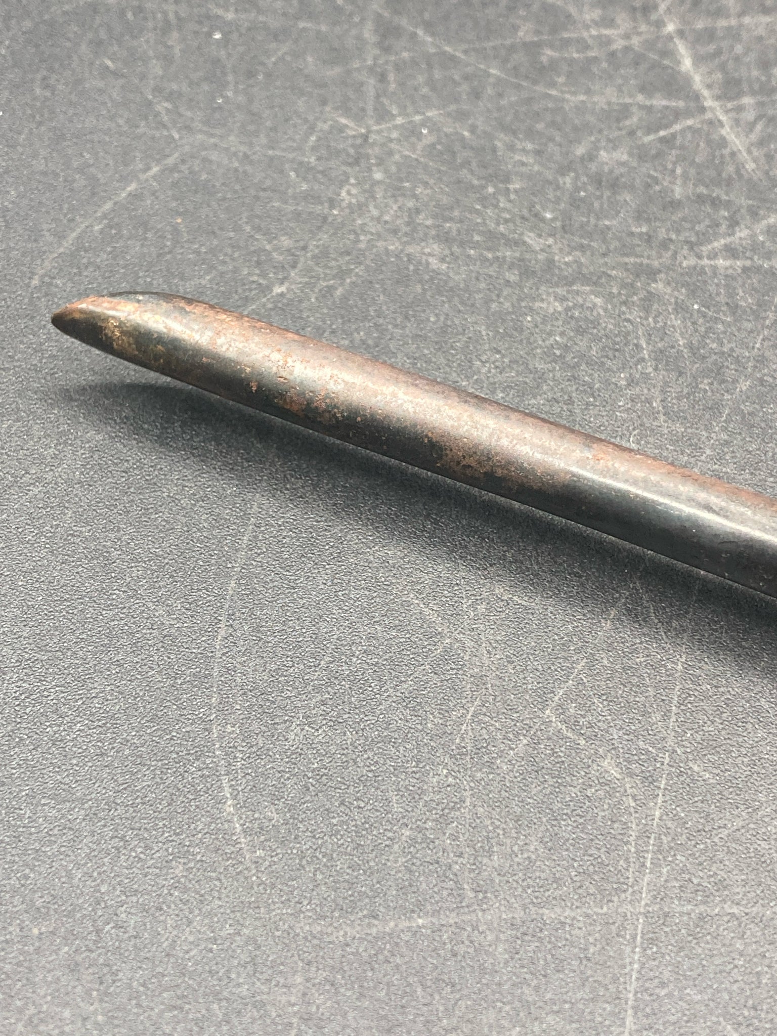 Antique French L. Pelleray curling iron. Victorian era early 20th century metal curling iron with faux ivory handles. Measures 11" long. Some visible surface rust, otherwise item is in good condition.