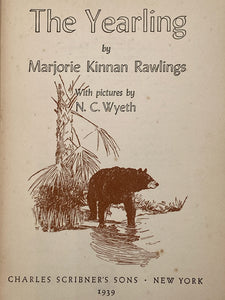 The Yearling | Marjorie Kinnan Rawlings w/ Illustrations by N.C. Wyeth (1939, Pulitzer Prize Edition, Charles Scribner's Sons, First Edition*) *NOTE - First Edition publication by virtue of 'A' identifier beneath the copyright's written context
