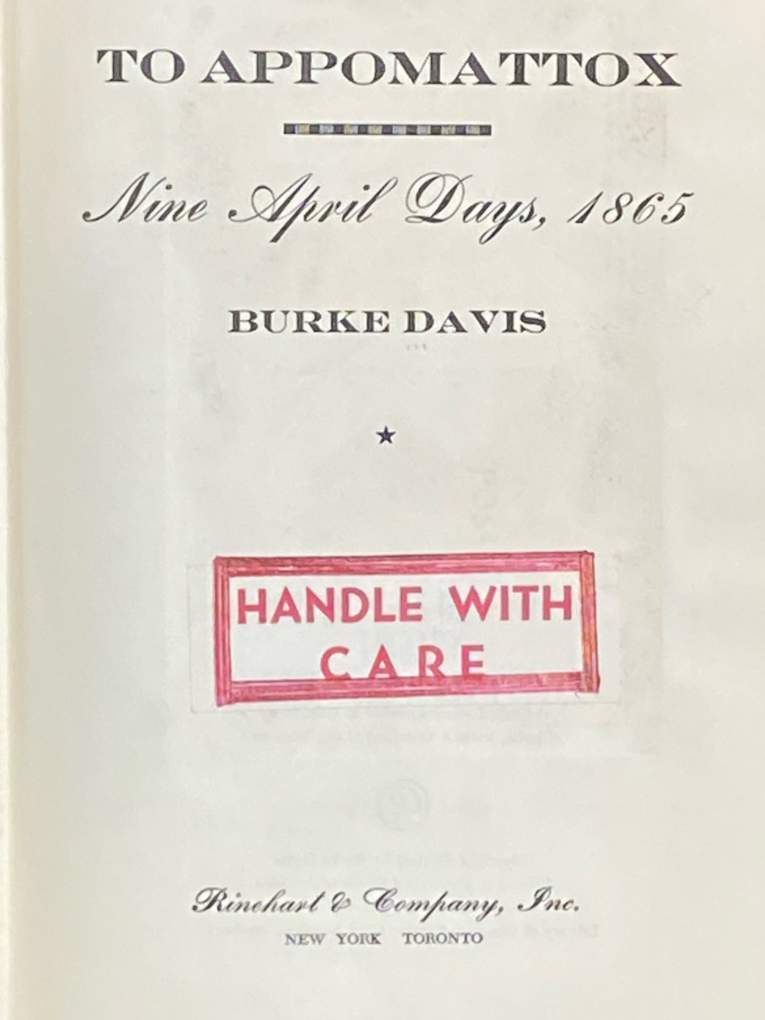 To Appomattox: Nine April Days, 1865 | Burke Davis (1959, Rinehart & Company, Inc.) Item Number: 4476-248 Item ID: 107817 Category: Book