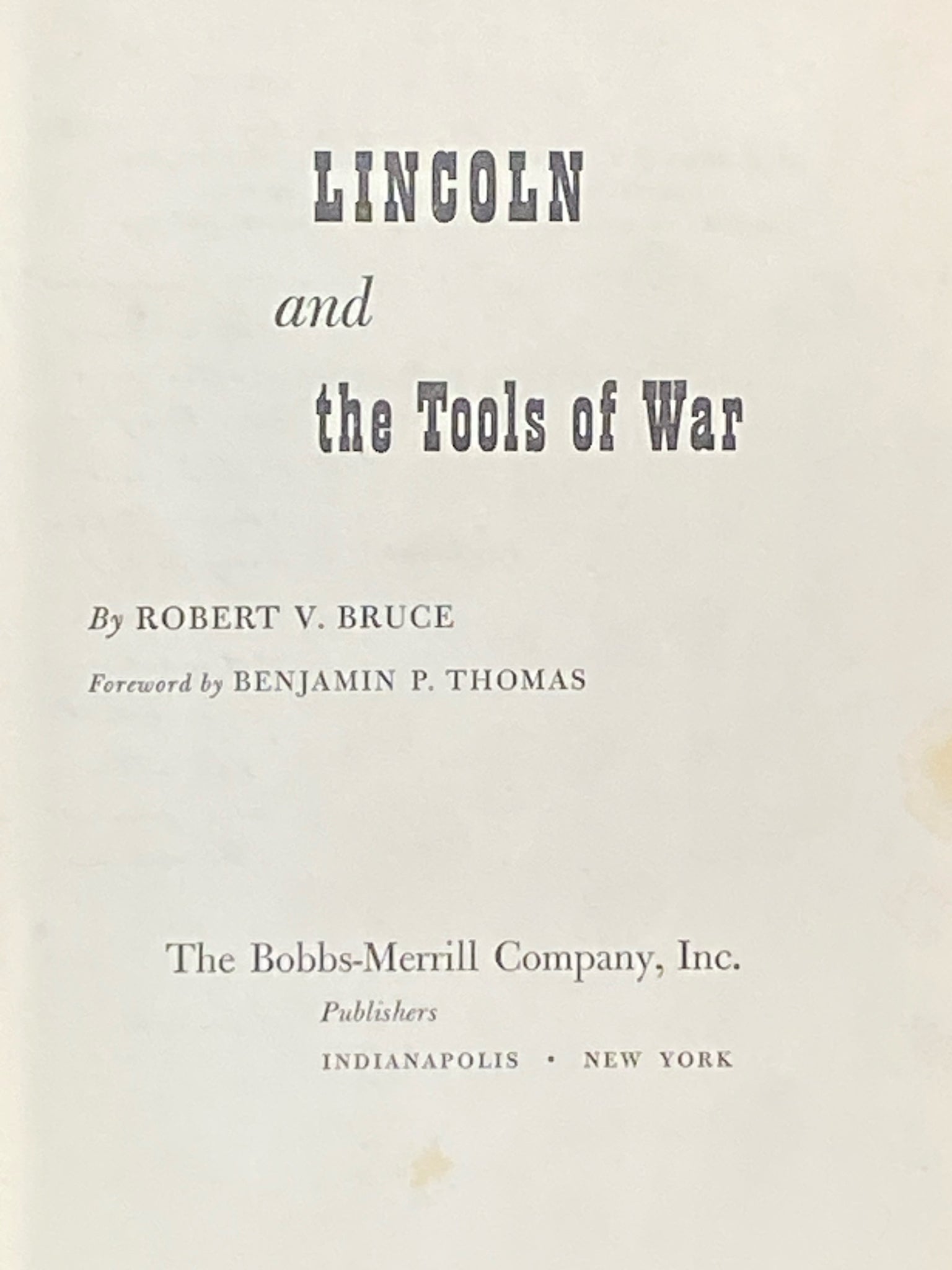 Lincoln and the Tools of War | Robert V. Bruce (1956, The Bobbs-Merrill Company, Inc., First Edition) Item Number: 4476-249 Item ID: 107820 Category: Book