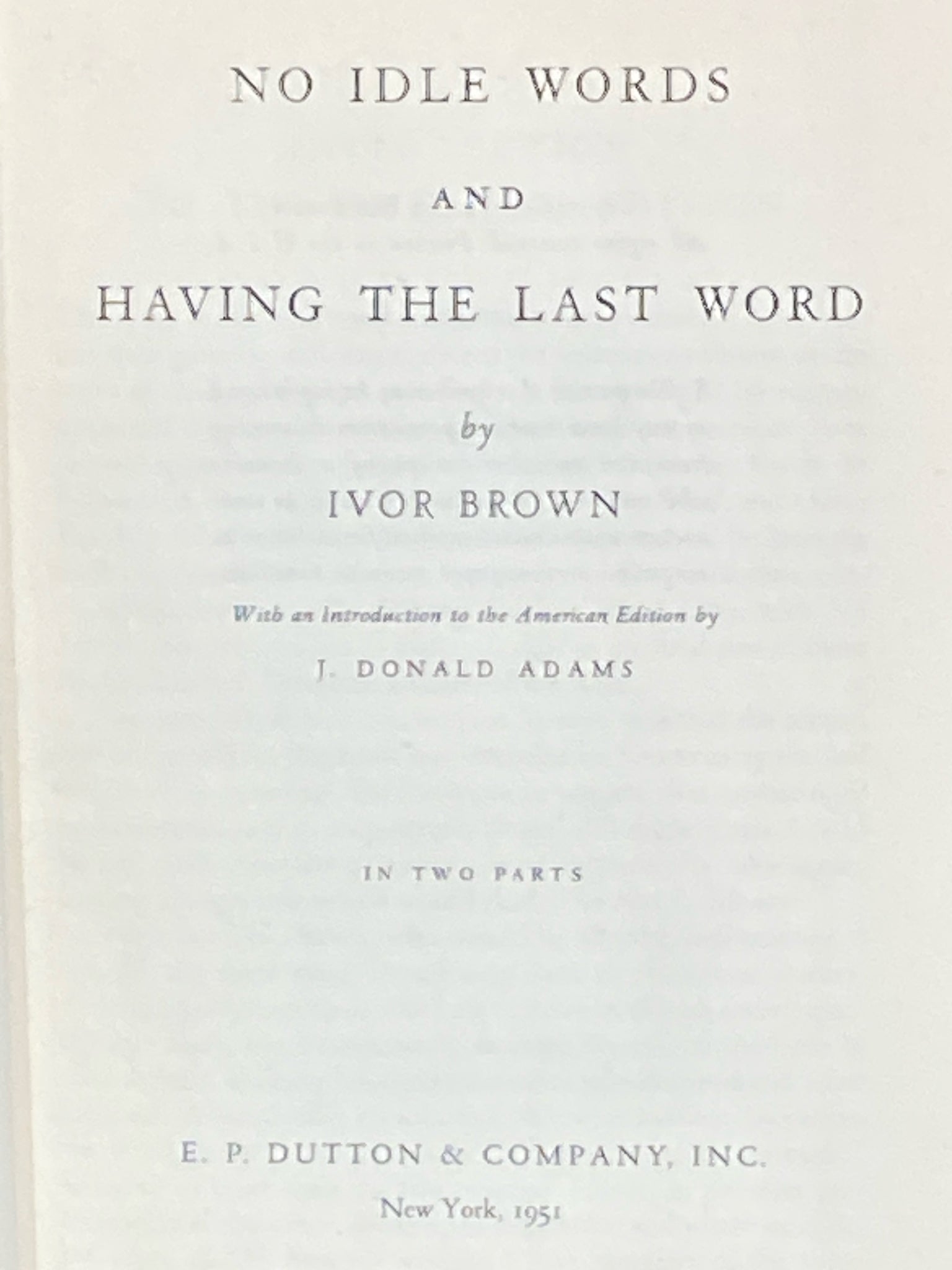 No Idle Words and Having the Last Word | Ivor Brown (1951, E.P. Dutton & Company, Inc., First Edition) Item Number: 4476-269 Item ID: 108223 Category: Book