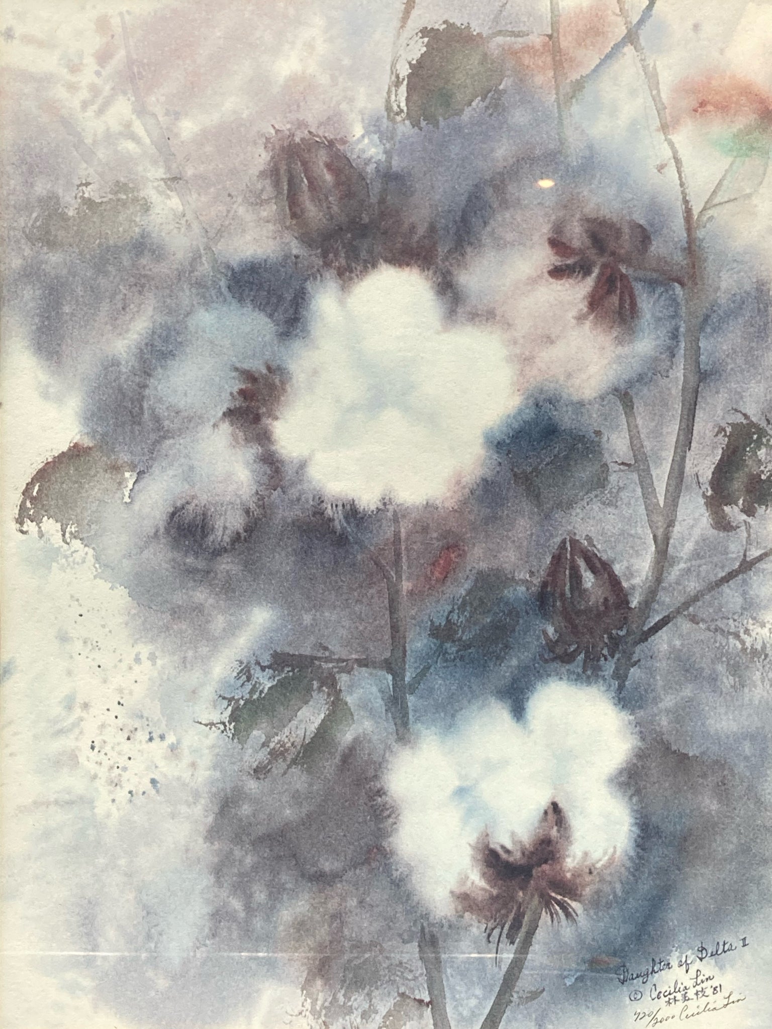 Cecilia Lin signed limited edition "Daughter of the delta I" and "Daughter of the detla II" art prints, framed and matted. Lithograph on paper. Uniquely styled floral themed work using muted pastel tones. Each print is signed and numbered by Cecilia Lin in the lower left corner. Delta I is 657/2000, Delta II is 720/2000. Each print measures 12" wide by 16" tall, total size with frame is 24" by 32". Frame has some light wear, prints are in excellent condition.