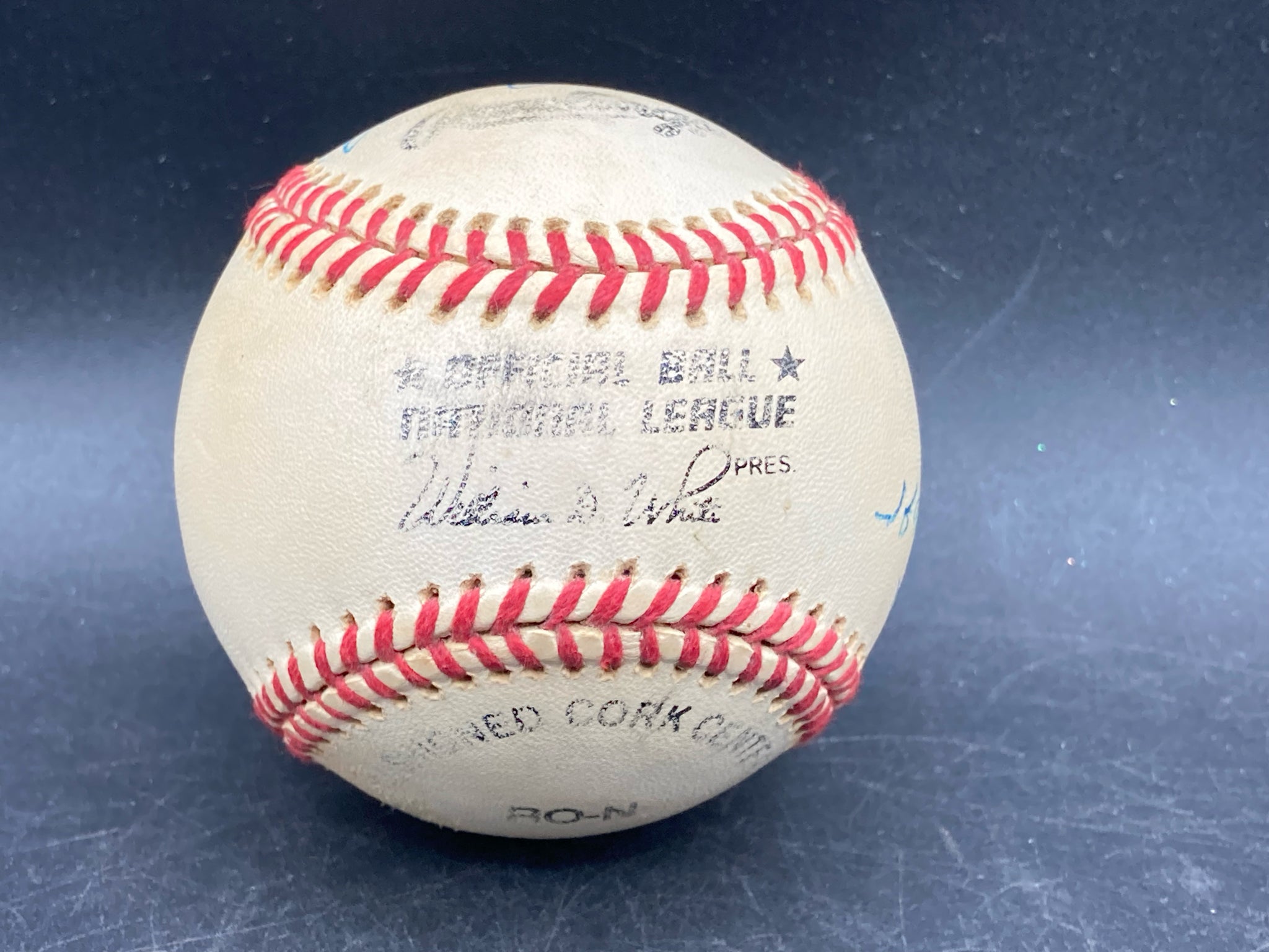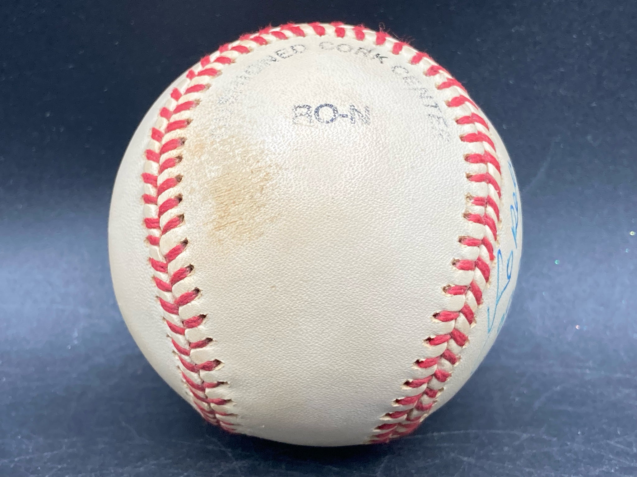 Chan Ho Park & Ron Perranoski signed baseball. Park's signature is inscribed as "CH Park 61" in black ink. Two oher signatures are present but were not able to be easily identified. Ball is in good condition with only slight yellowing. Signatures are clean and legible. Ball is not authenticated.