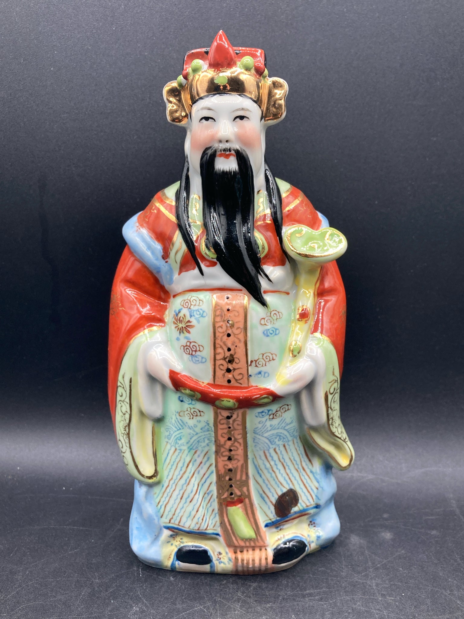 Chinese republic period porcelain General Kwan figure. Circa 1911 to 1949. Hand made and hand painted with great detail in traditional style. Figure measures 9" tall. Item is in good condition.