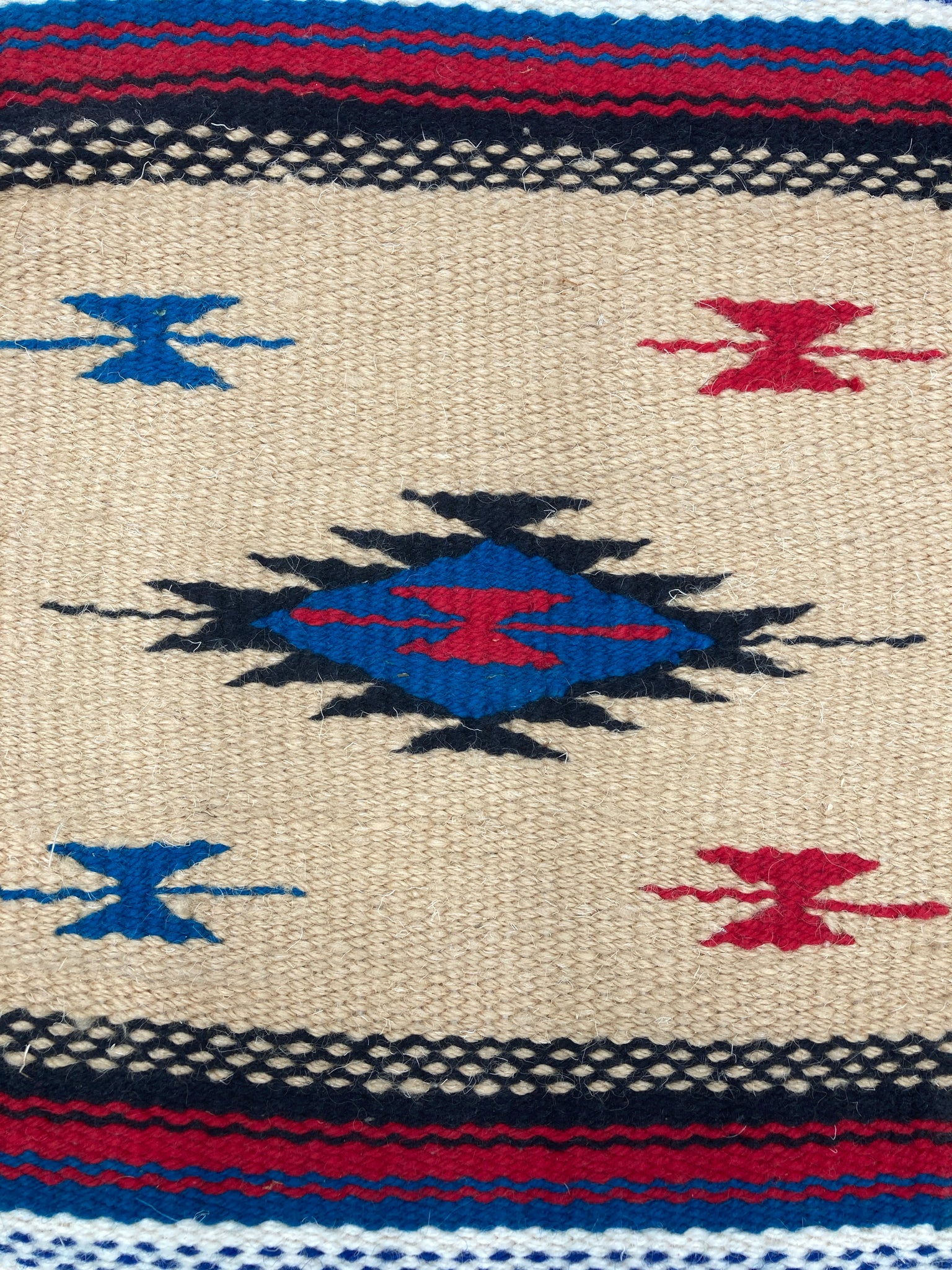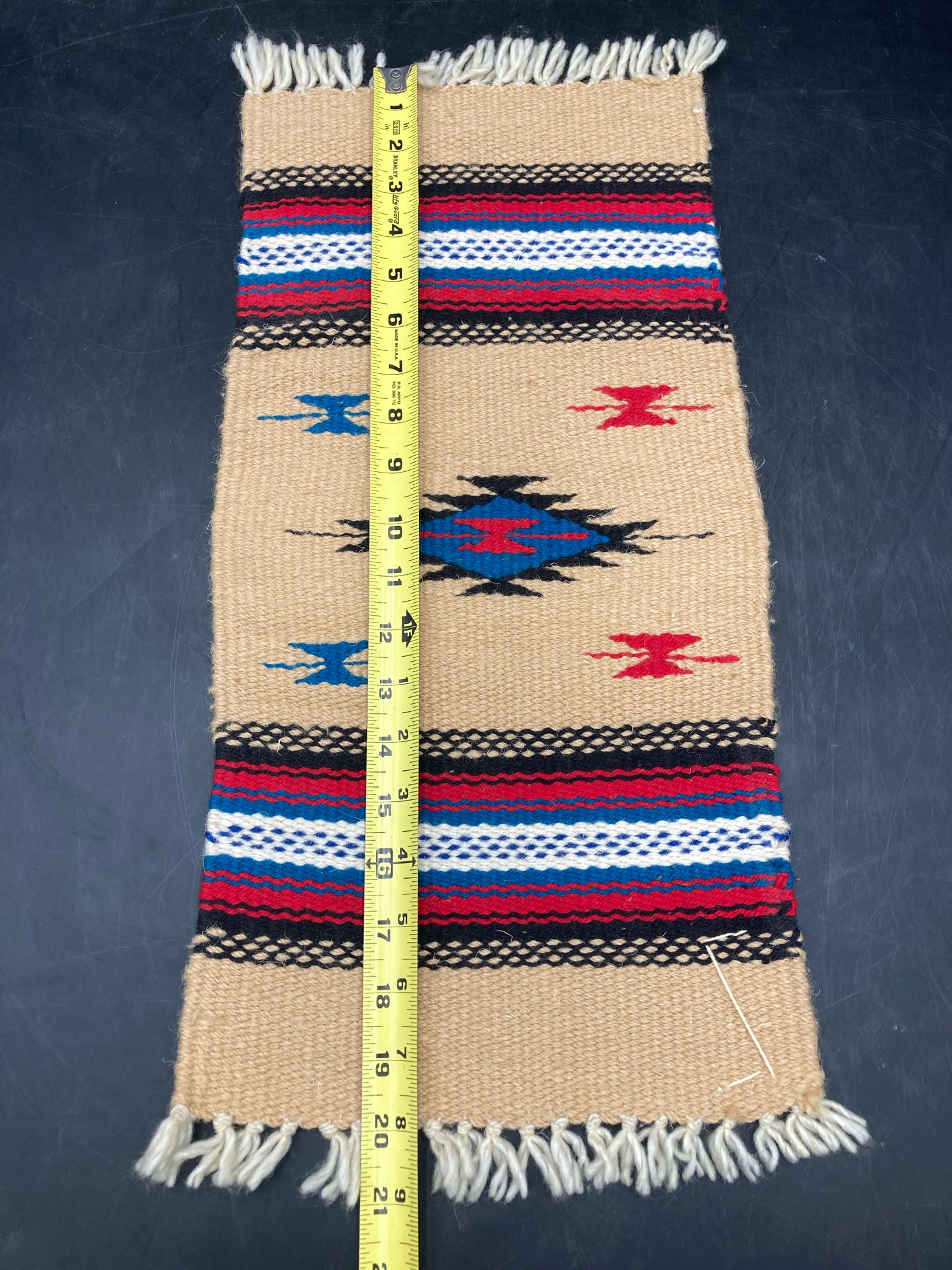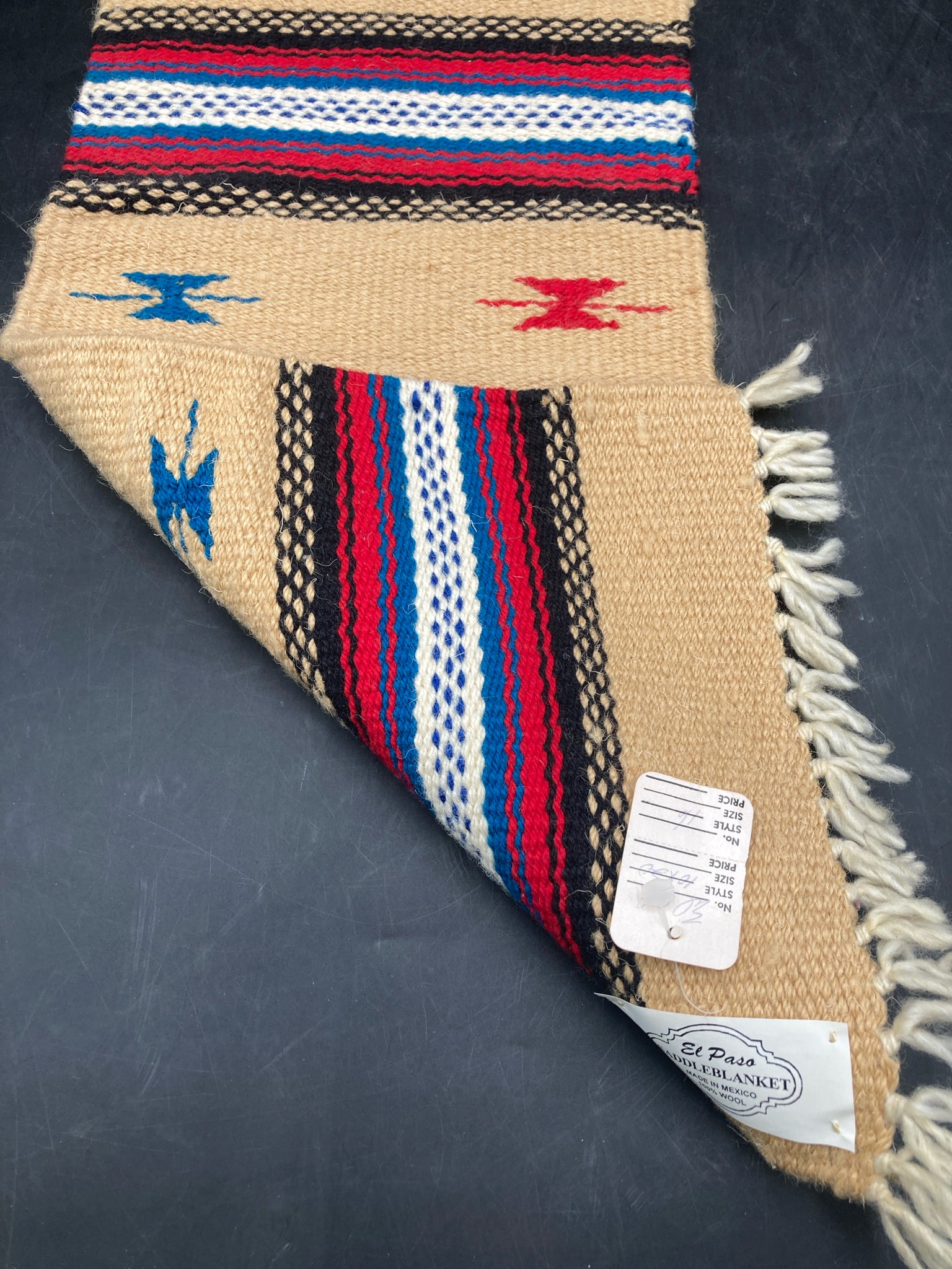 Vintage El Paso Saddleblanket 10x20" wool rug. Mexican made with 100% natural wool using traditional styles and vibrant colors. Item is in good condition.