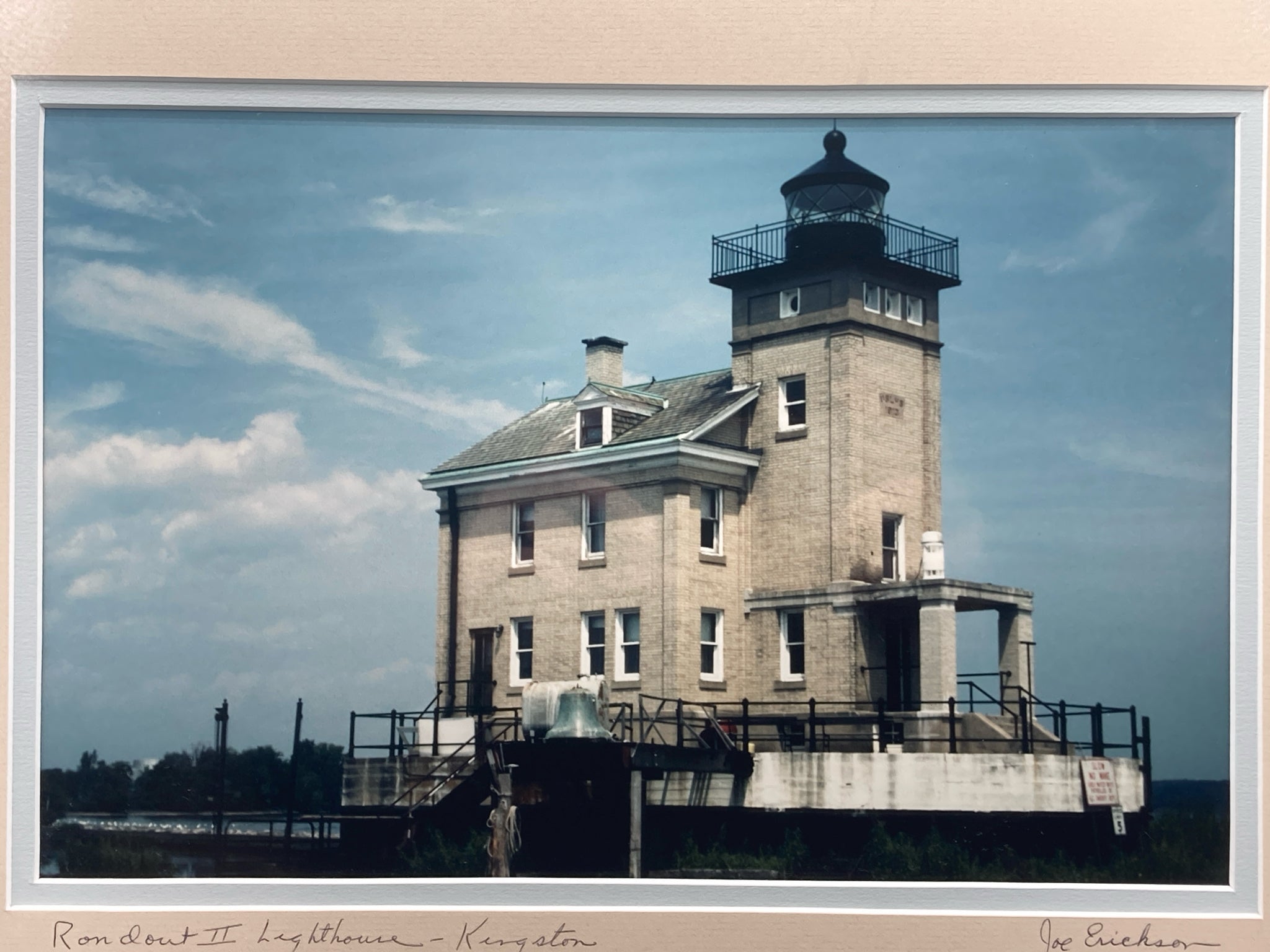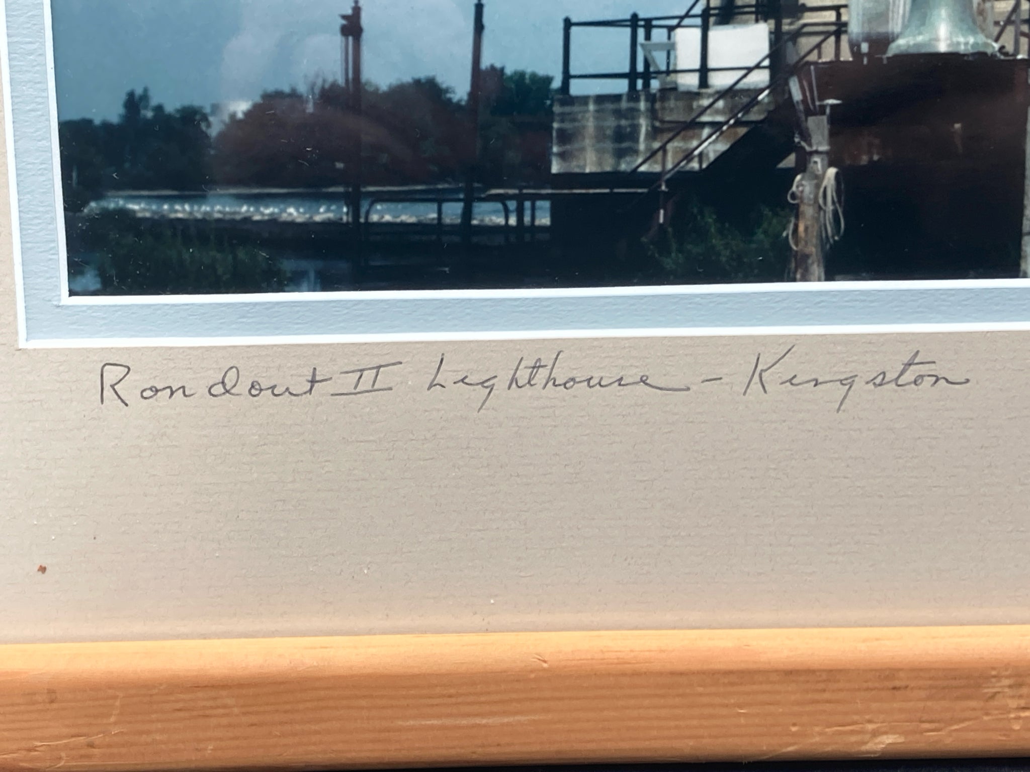 Vintage framed and matted 8x12" Rondout Lighthouse photograph. Color photo of the famous lighthouse built in 1915 in Kingston, New York. Item is in good condition.