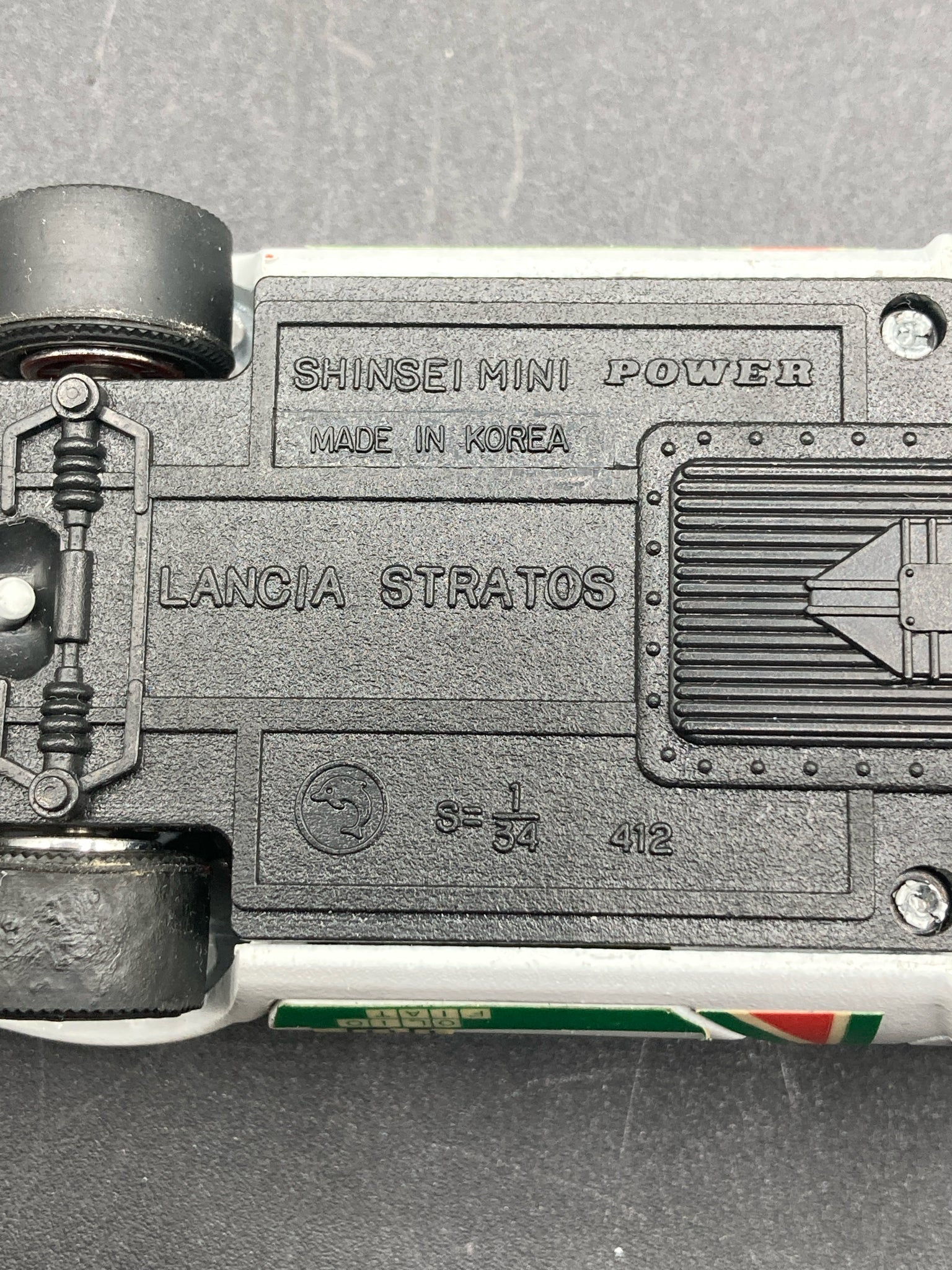 Shinsei Mini Power 1/34 scale Lancia Stratos rally friciton motor die cast. Features friction motor for self propulsion, heavy duty steel construction and opening doors with detailed interior. Motor tested in working condition and die cast is in good physical condition.