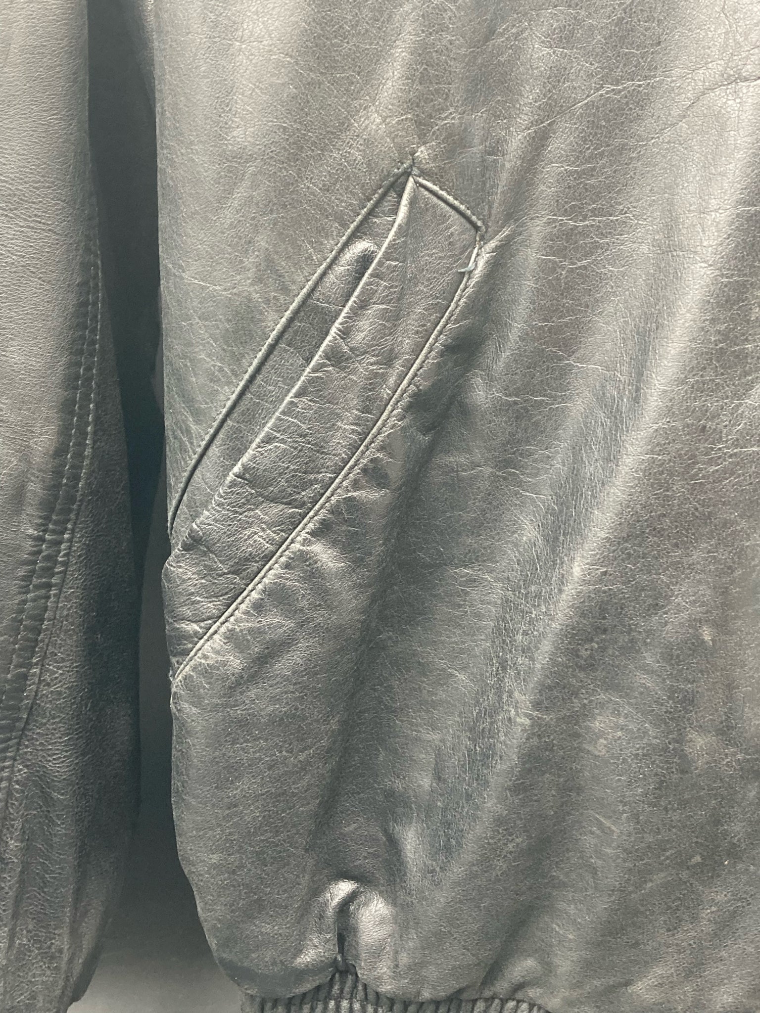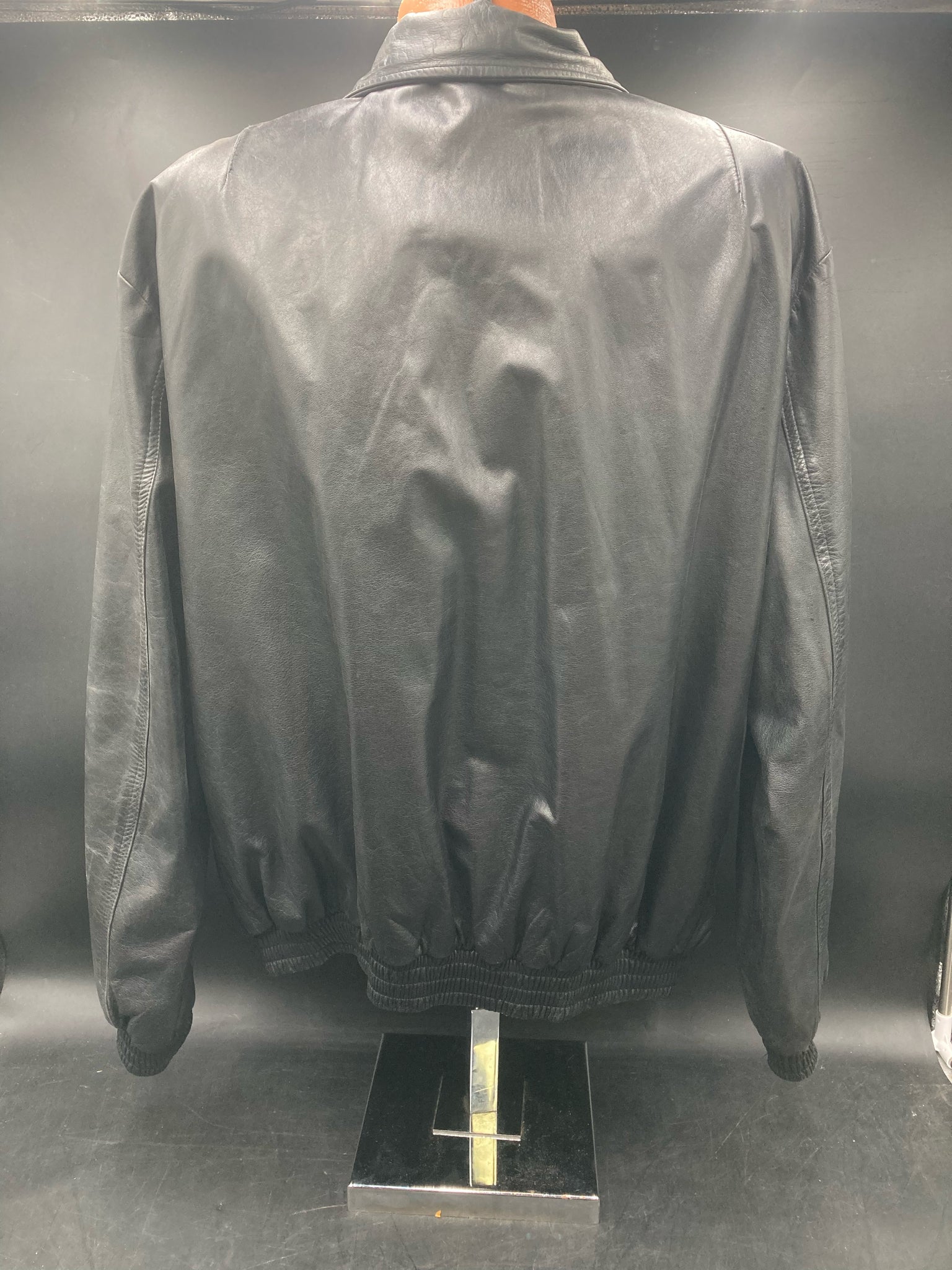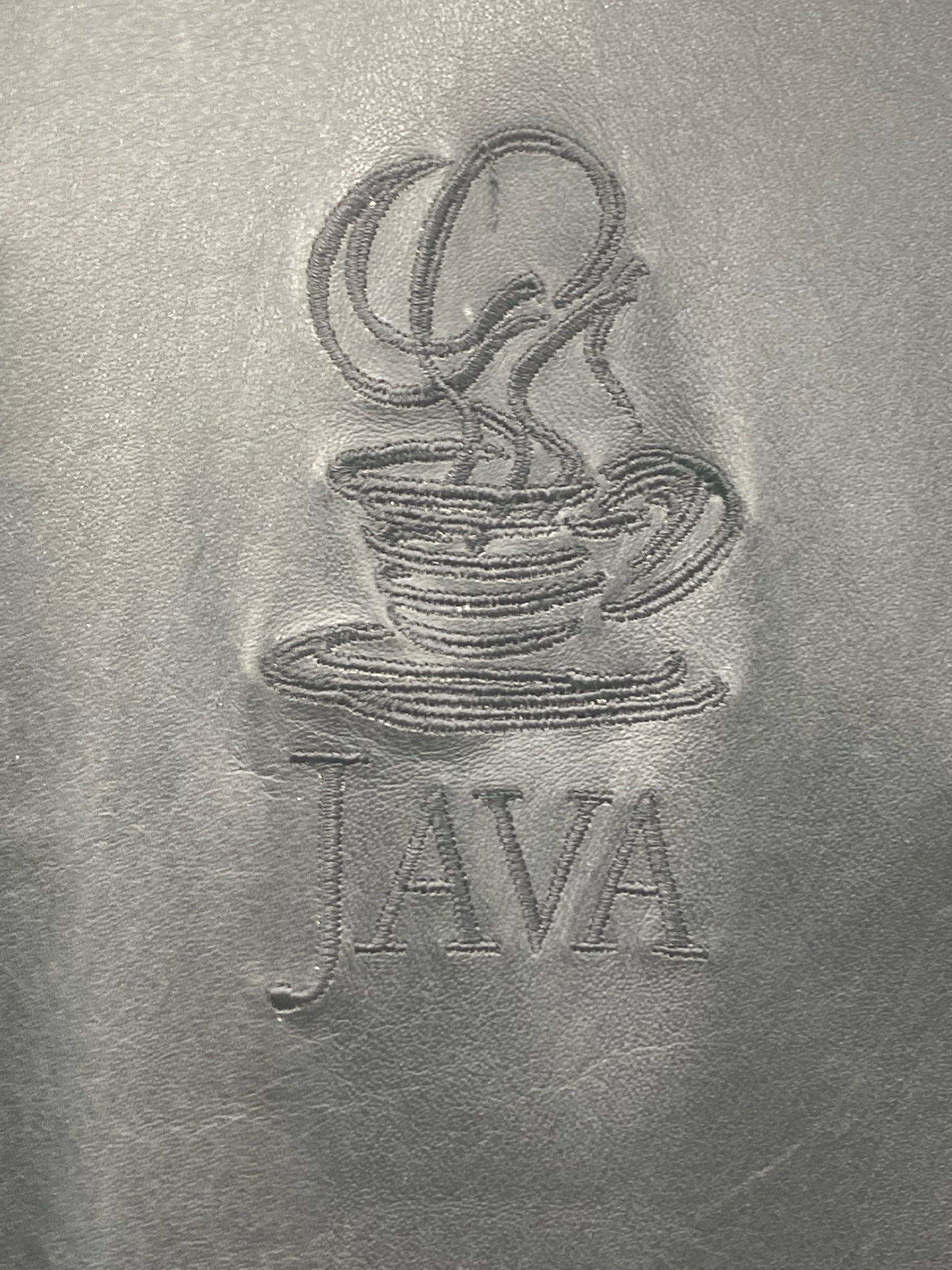 Vintage Java Sun microsystems leather jacket. Black color. Genuine leather outer with embroidered Java logo on front. Polyester lining. Size XXL. One small stain noted on front, otherwise is in good condition.